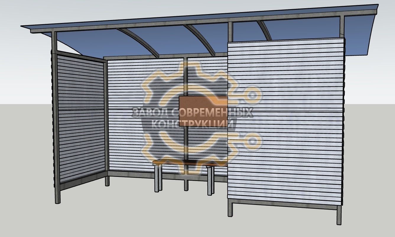 Автобусные павильоны серии «Стандарт-П» отличаются простой конструкцией, отличным качеством и низкой ценой. В проекте данных автобусных павильонов предусмотрена форма крыши скат назад для отлива воды.