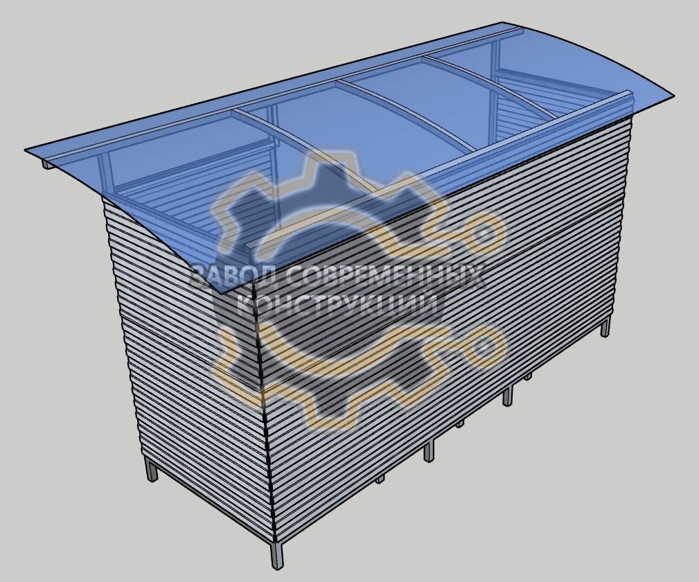 • Каркас крыши - стальные профильные трубы. Крыша имеет скат назад.