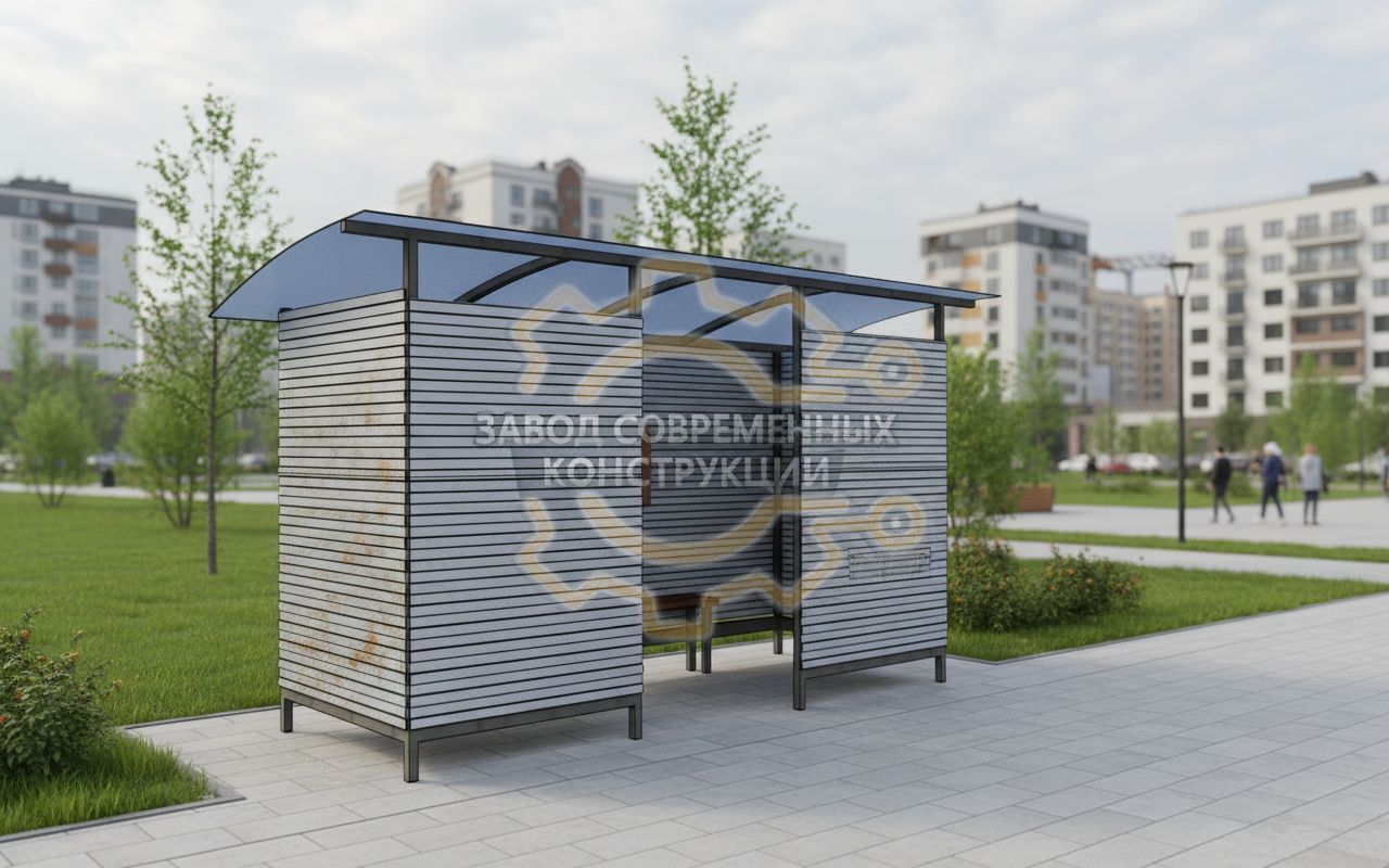 - Каркас крыши - стальные профильные трубы. Крыша имеет скат назад.