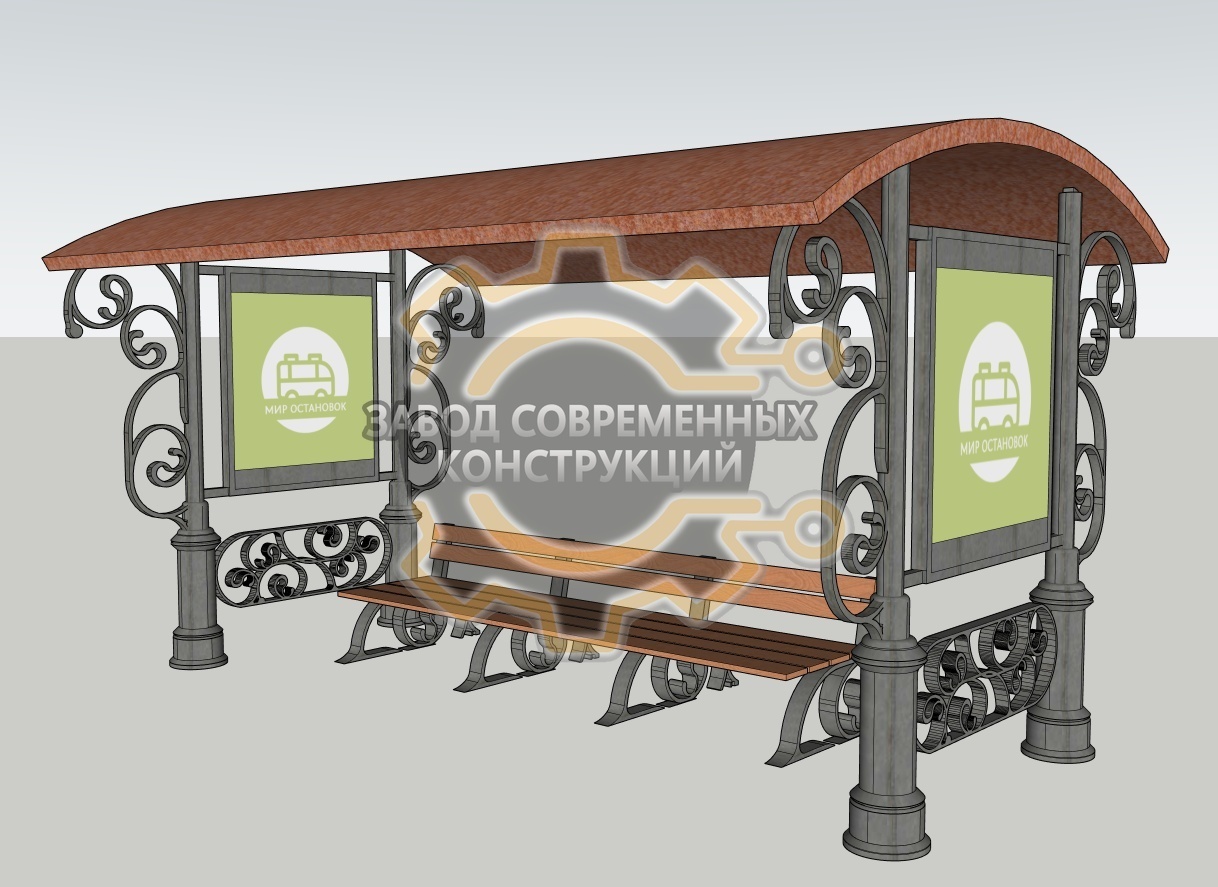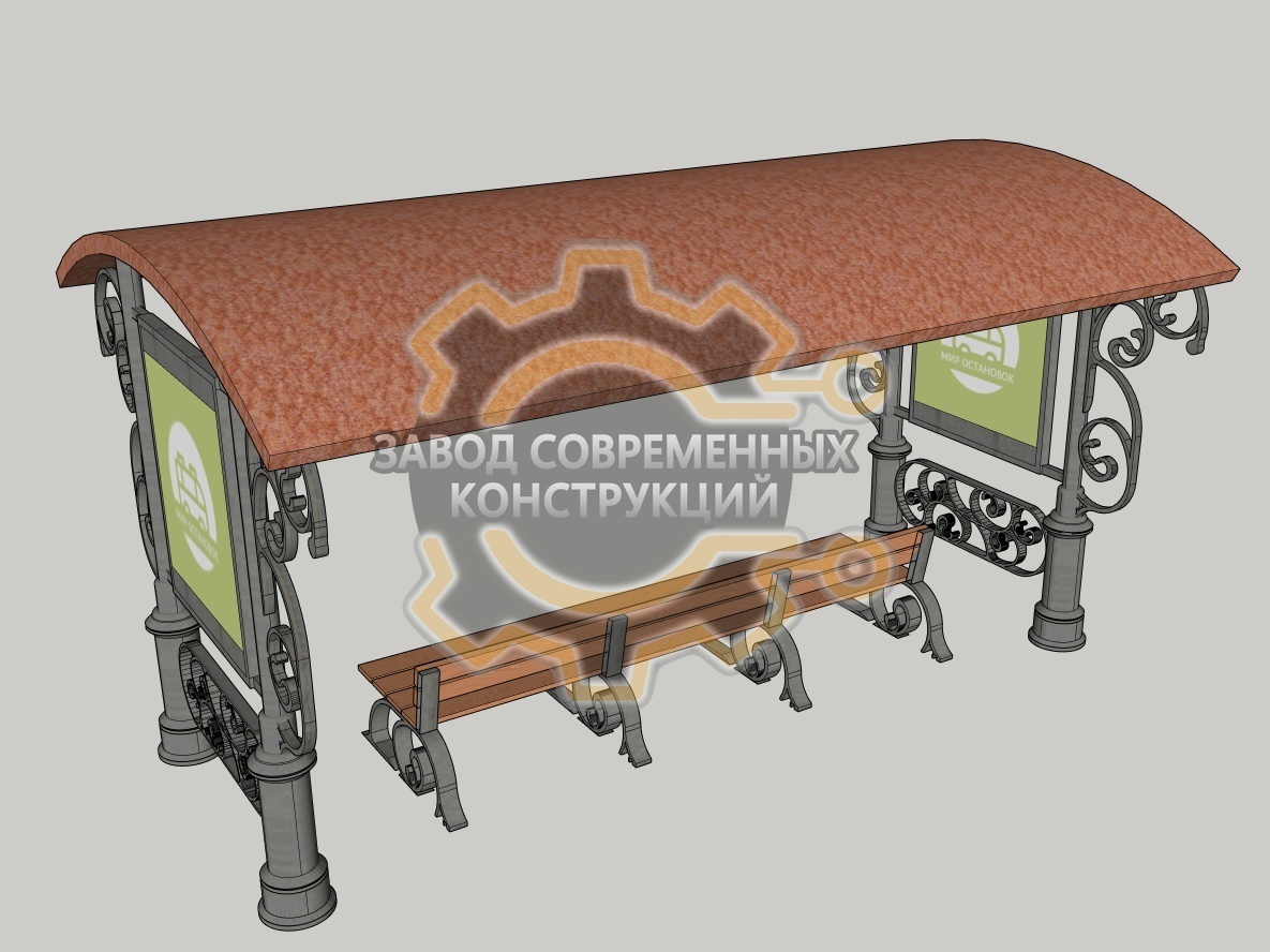 • Защита от непогоды: Специальный навес из качественных материалов над лавкой защищает от дождя и солнца, создавая комфортные условия ожидания для пассажиров в любую погоду.