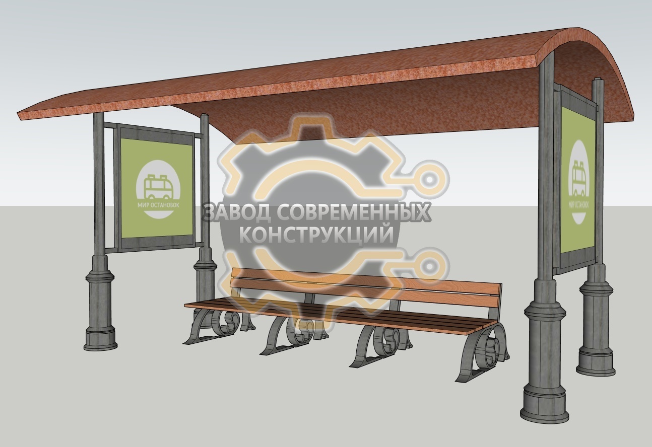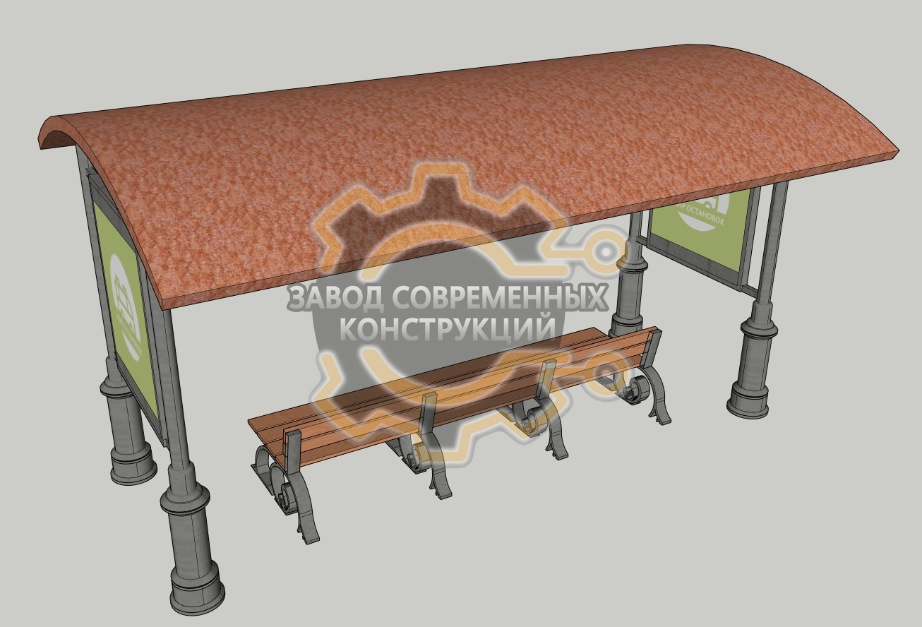 • Защита от непогоды: Специальный навес из качественных материалов над лавкой защищает от дождя и солнца, создавая комфортные условия ожидания для пассажиров в любую погоду.
