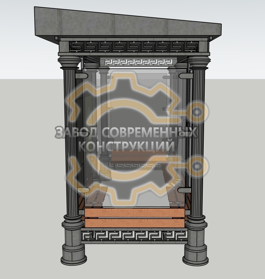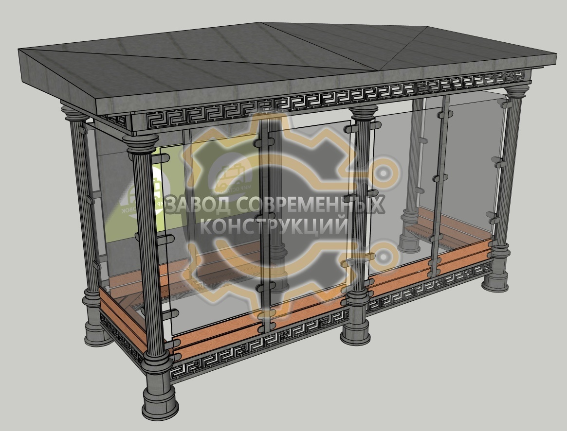 • Удобство и комфорт: Широкие скамейки из качественного дерева обеспечивают комфортное ожидание, а прозрачные панели защищают от погодных условий, не ограничивая видимость.