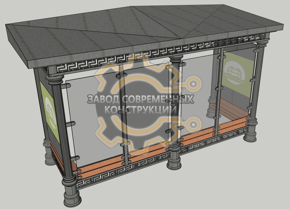 • Удобство и комфорт: Широкие скамейки из качественного дерева обеспечивают комфортное ожидание, а прозрачные панели защищают от погодных условий, не ограничивая видимость.