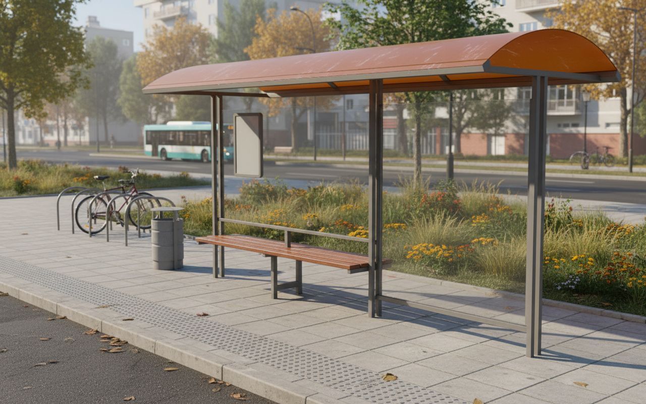 - Лавка - круглые профильные трубы; массив сосны, окрашенный алкидно-уретановой эмалью.