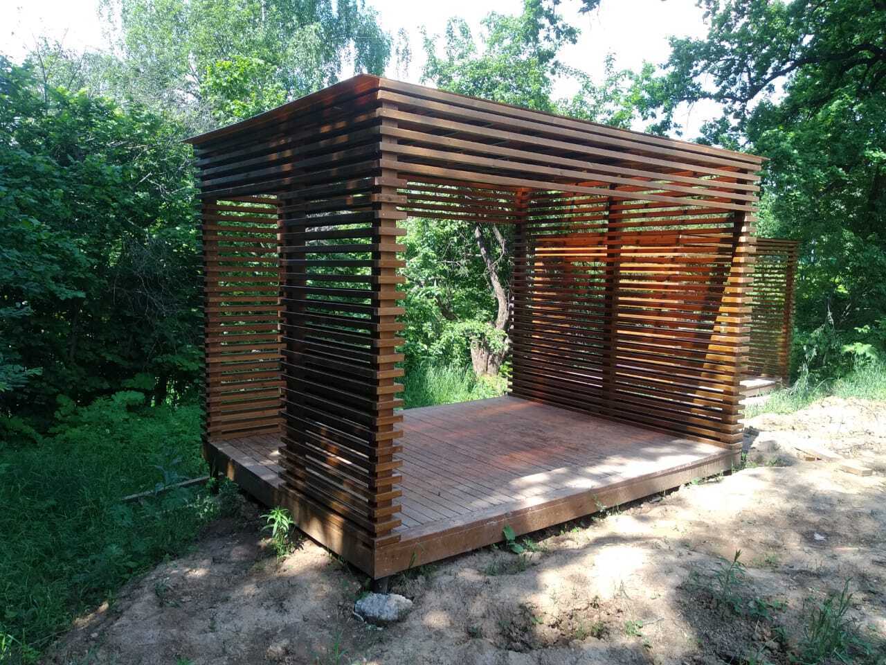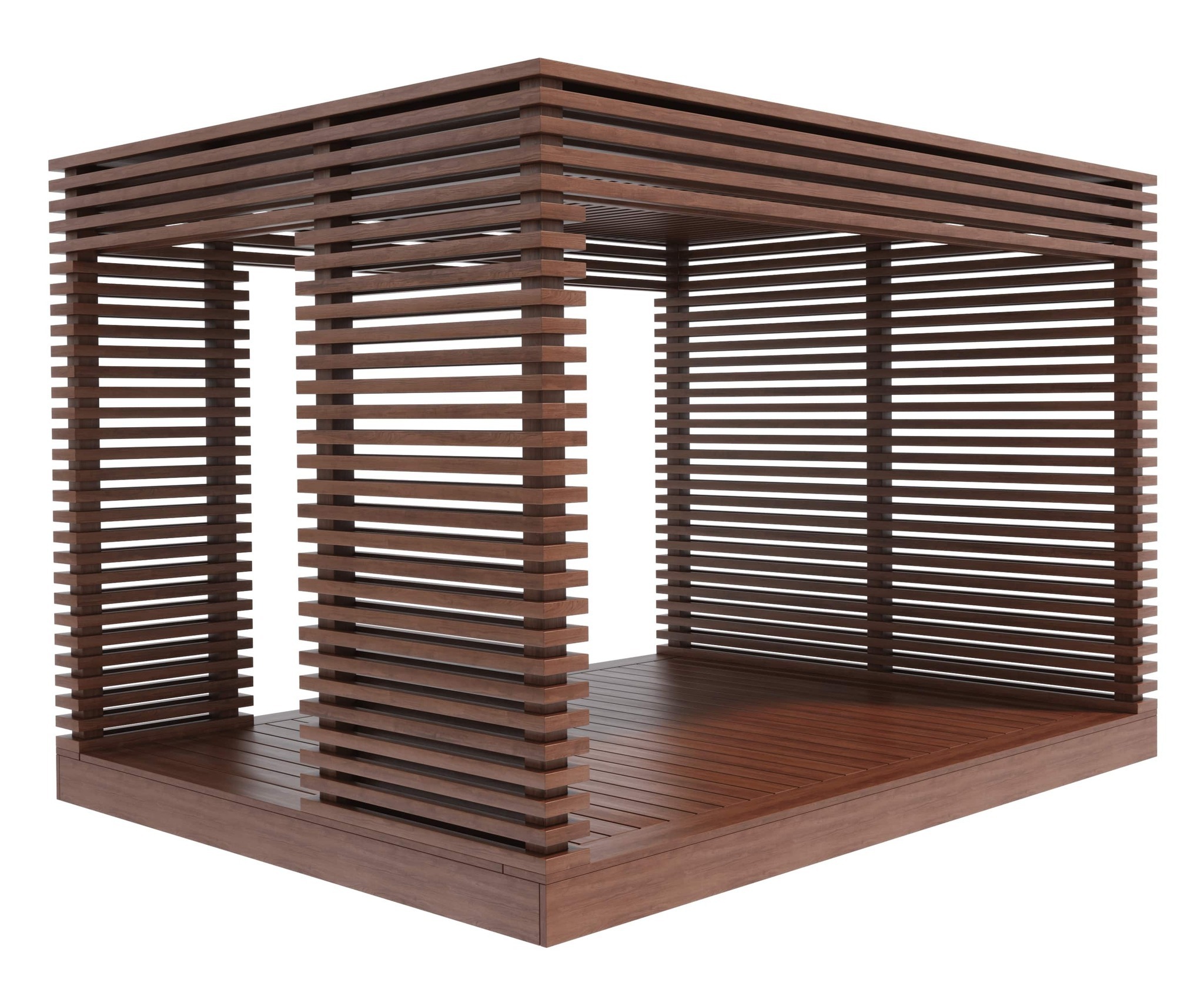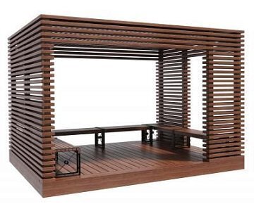 Каркас: Брус из хвойных пород древесины. Покрытие - атмосферостойкая лессирующая акриловая пропитка с лаком. Стандартные цвета: Палисандр, Махагон, Тик.Крыша: Поликарбонат сотовый 10 мм.