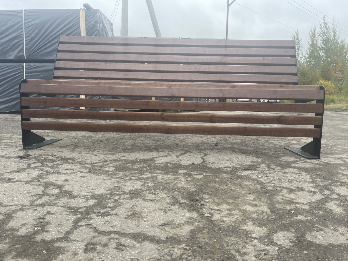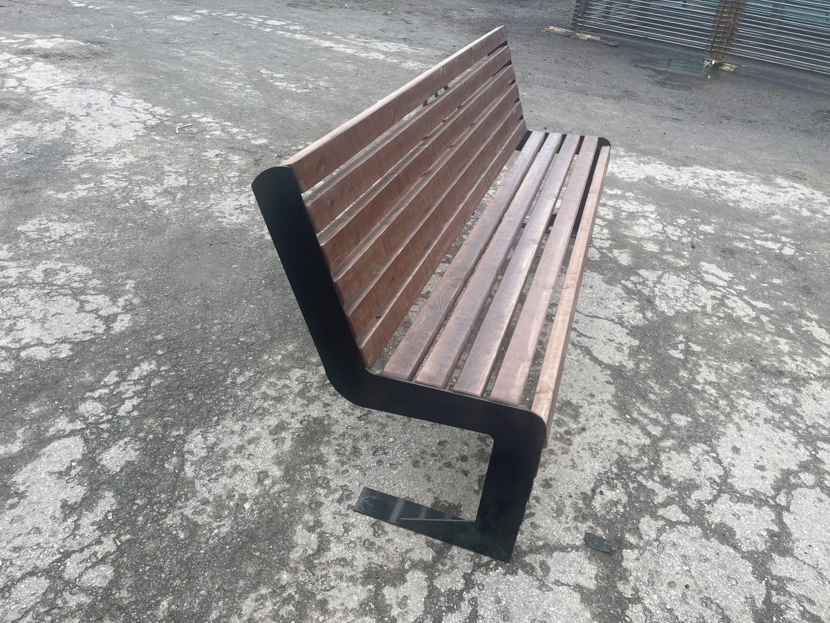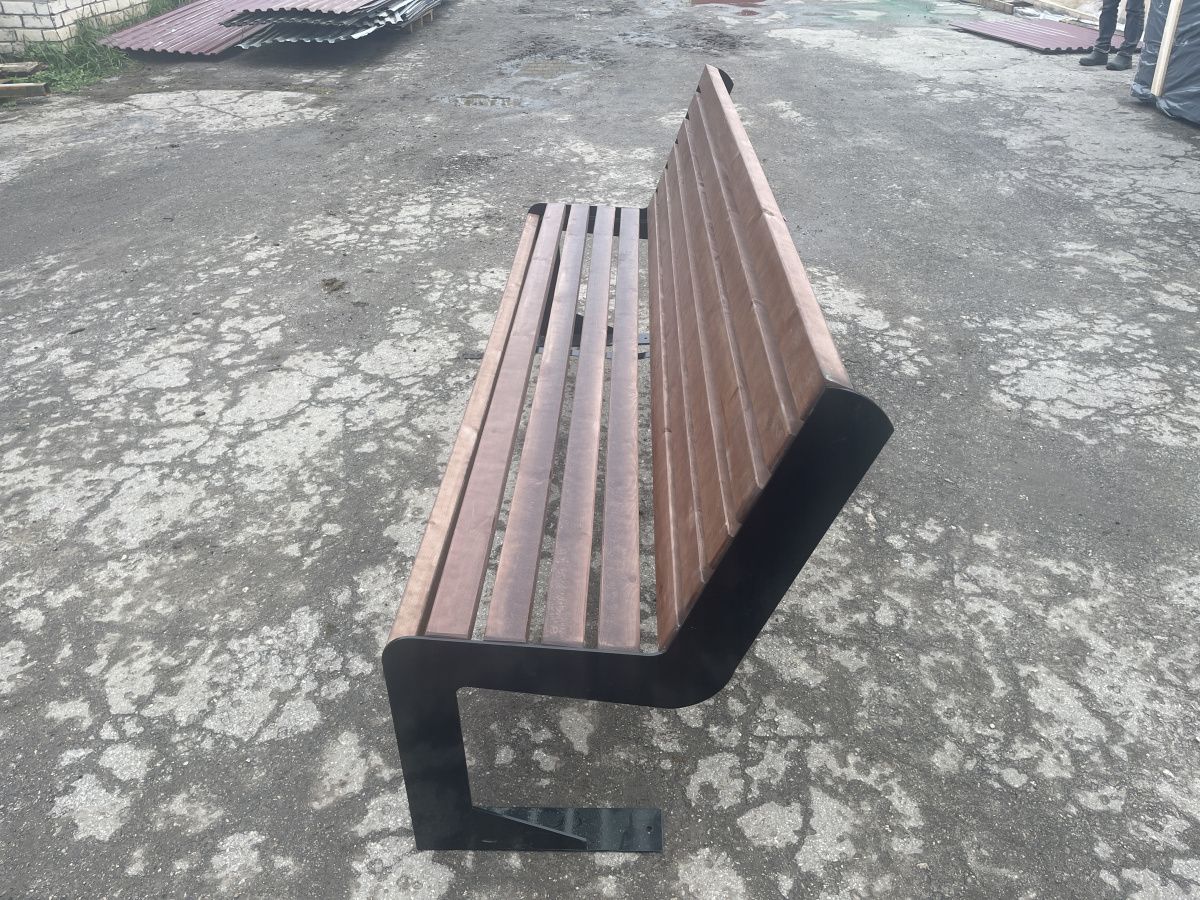 Скамейка парковая «Пушкино» это воплощение эргономичности и стиля. Модель отличает продуманная форма, плавный переход от спинки к сиденью, отсутствие подлокотников и декоративных деталей. Каркас выполнен из стали, окрашенной порошковой полимерной краской черного цвета, фиксируется к основанию при помощи анкерного крепежа. Деревянные элементы покрыты тонировочной пропиткой и яхтным лаком, что защищает их от внешних воздействий при уличной эксплуатации.