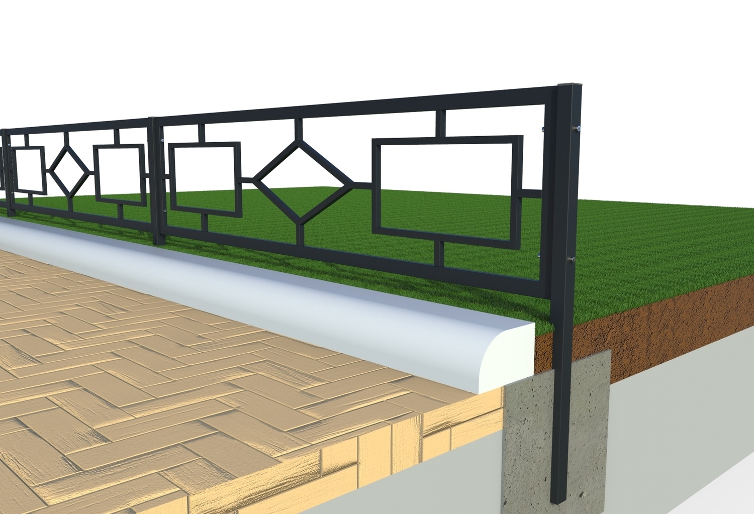 Установка газонных ограждений:Высота ограждения 500 мм. Металлические секции крепятся к столбам, которые, в свою очередь, бетонируются в землю на глубину 500 мм. Высота столба 1000 мм.