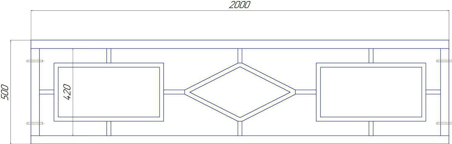 Габаритные размеры: ширина - 2000 мм, высота - 500 мм.