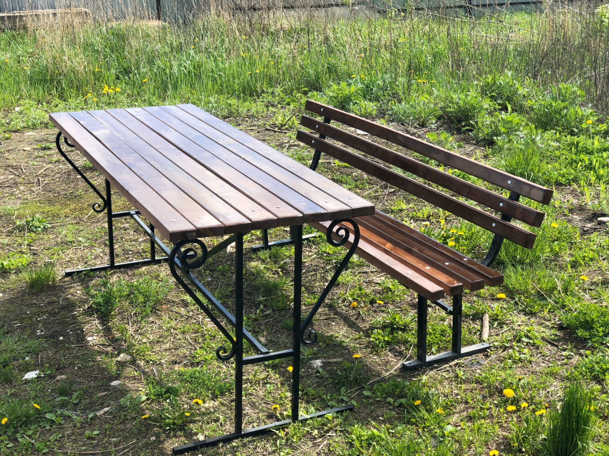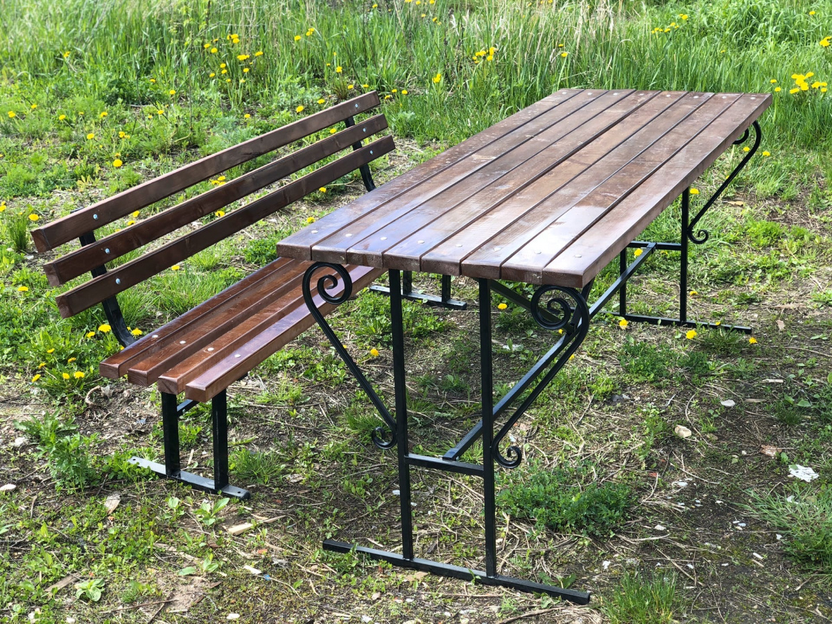 Комплект садово парковой мебели СП "Садово-парковый", представляет собой сочетание ярких решений для сада, загородного дома, развлекательных комплексов.Выполнен из квадратной трубы диаметром 25*25 мм, окрашен порошковой краской. Брус обработан антисептиком, после чего нанесены три слоя лака.В стандартную комплектацию входит:-Стол "СП" 2,0 метра. ( 1 шт. )-Стул "Лоза" ( 2 шт. )-Скамейка "СП" - 2,0 метра ( 2 шт. )Так же возможно приобретение в других комплектациях на выбор покупателя.