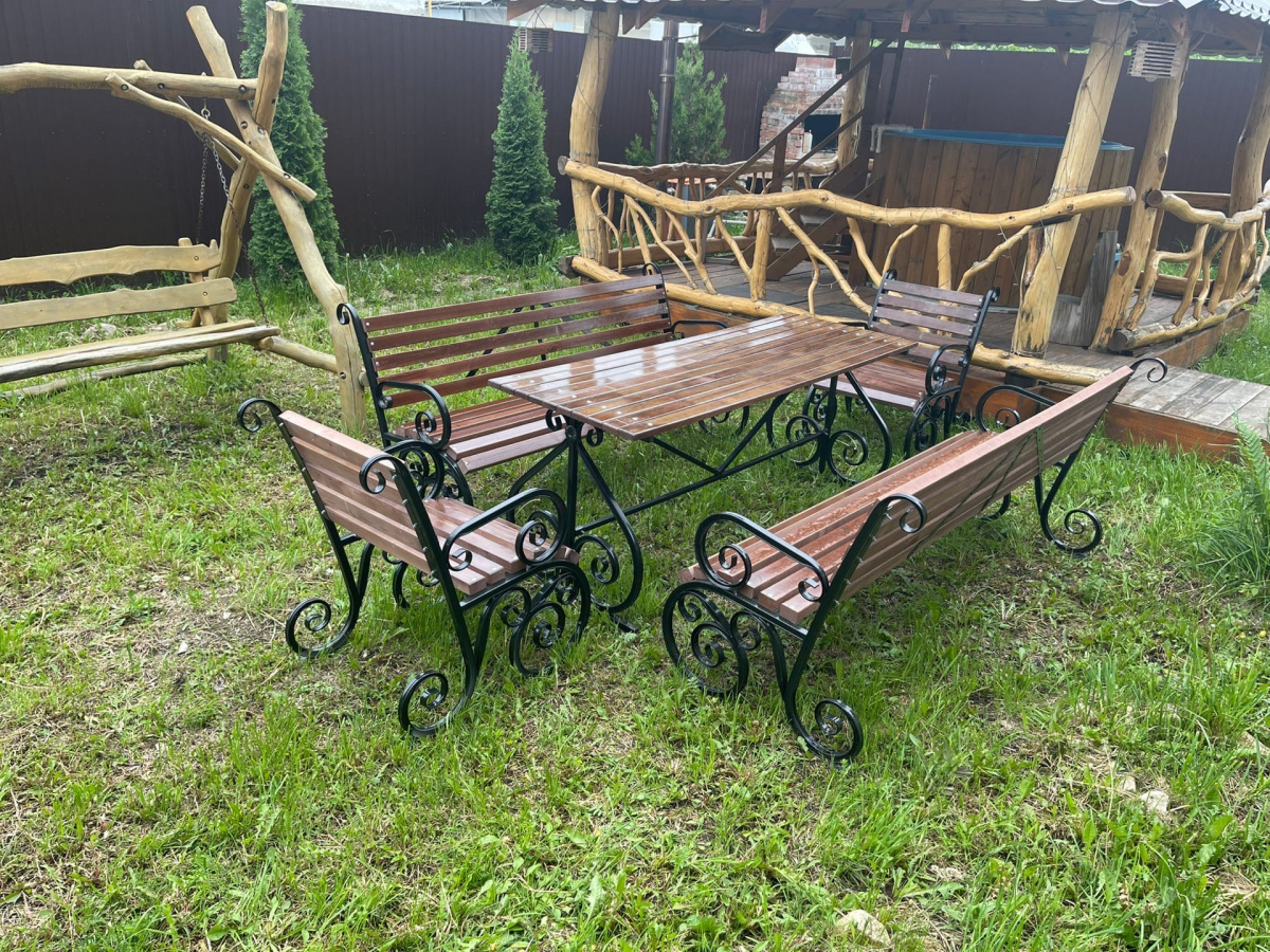 Комплект садово-парковой мебели "Вдохновение", представляет собой сочетание ярких, изящныхрешений для сада, загородного дома, развлекательных комплексов.Комфорт и выгодная цена комплекта «Вдохновение» являются его неоспоримым преимуществом.В стандартную комплектацию входит:-Стол "Вдохновение" 1,5 метра. ( 1 шт. )-Стул "Вдохновение" ( 2 шт. )-Скамейка "Вдохновение" - 1,5 метра ( 2 шт. )Так же возможно приобретение в других комплектациях на выбор покупателя.