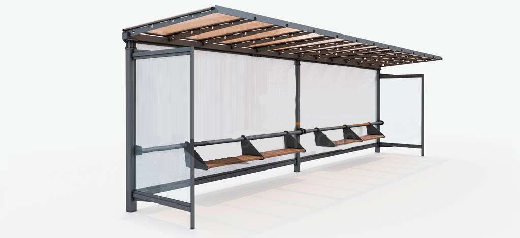 Остановочный павильон LITE PLUS предназначен для установки на остановочных пунктах с средним пассажиропотоком в отдаленных точках городских маршрутов и вдоль дорог междугородного транспортного сообщения.