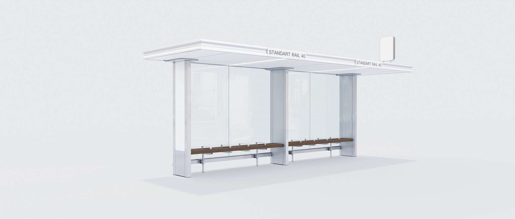 Остановочные павильоны модели «STANDART RAIL 40» устанавливаются на маршрутах, характеризующихся повышенным пассажиропотоком - 70-80 чел/час.
