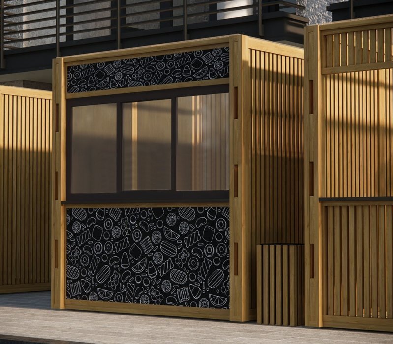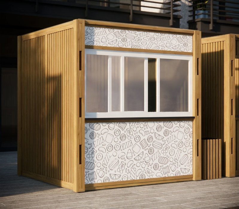 Бовер- это модульная, реечная конструкция, современный торговый павильон из дерева, легко адаптируется к разным форматам и видам торговли. Простой и лаконичный дизайн органично вписывается в любую концепцию мероприятия. Он одинаково стильно смотрится на улицах города и в торговых центрах. Может использоваться, как кофейный ларёк, киоск с сувенирами или мороженым. Так же, может применяться для ярмарочной торговли и фестивальной застройки. На этой конструкции отлично смотрится печать на обшивке. Выглядит эффектно, придаёт торговому павильону индивидуальный стиль и дизайн. Размер: 2х2 м. ВЫСОТА 2,2 м. Что входит в стоимость торгового павильона «БОВЕР» Б-15 КОНСТРУКТИВ: - Плитка / блоки на выбор - Колонны деревянные, сдвоенные декоративные (4 шт.) - Система лаг (обвязка, лаги) - Стропильная система (обвязка, стропила) - Пол ОСП не менее 12 мм - Стенки реечные, боковые (2 шт.) Рама 45 х 45 мм, рейка декоративная 40 х 22 мм, просвет 20 мм. - Стенка реечная, задняя (1 шт.) Рама 45 х 45 мм, рейка декоративная 40 х 22 мм, просвет 20 мм. - Дверь реечная в комплекте с замком, ручкой, крепёжными элементами - Стол-прилавок. 1800 х 600 мм. Материал: фанера ОСП-2, опоры - брус 45 х 45 мм., крепёжные элементы - Передняя стенка меловая. Высота 900 мм. Материал: обшивка фанера ФСФ + меловое окрашивание., крепёжные элементы - Окно раздвижное, 3 части, каркас алюминиевый КРОВЛЯ: - Кровля поликарбонат сотовый, толщина не менее 8 мм. - Комплект расходных кровельных материалов ОБРАБОТКА, ОКРАШИВАНИЕ: - Антисептирование лаговой системы - Обработка огнебиозащитным составом всех элементов конструкции (с выдачей сертификата) ДЕКОР: - Фриз шириной 300 мм с лицевой стороны конструкции, покрытие меловая краска (1 шт.) Характеристики: Производитель Россия Артикул Н138589 Высота 220 см Ширина 200 см Глубина 200 см Материал деревянные Размещение на улице