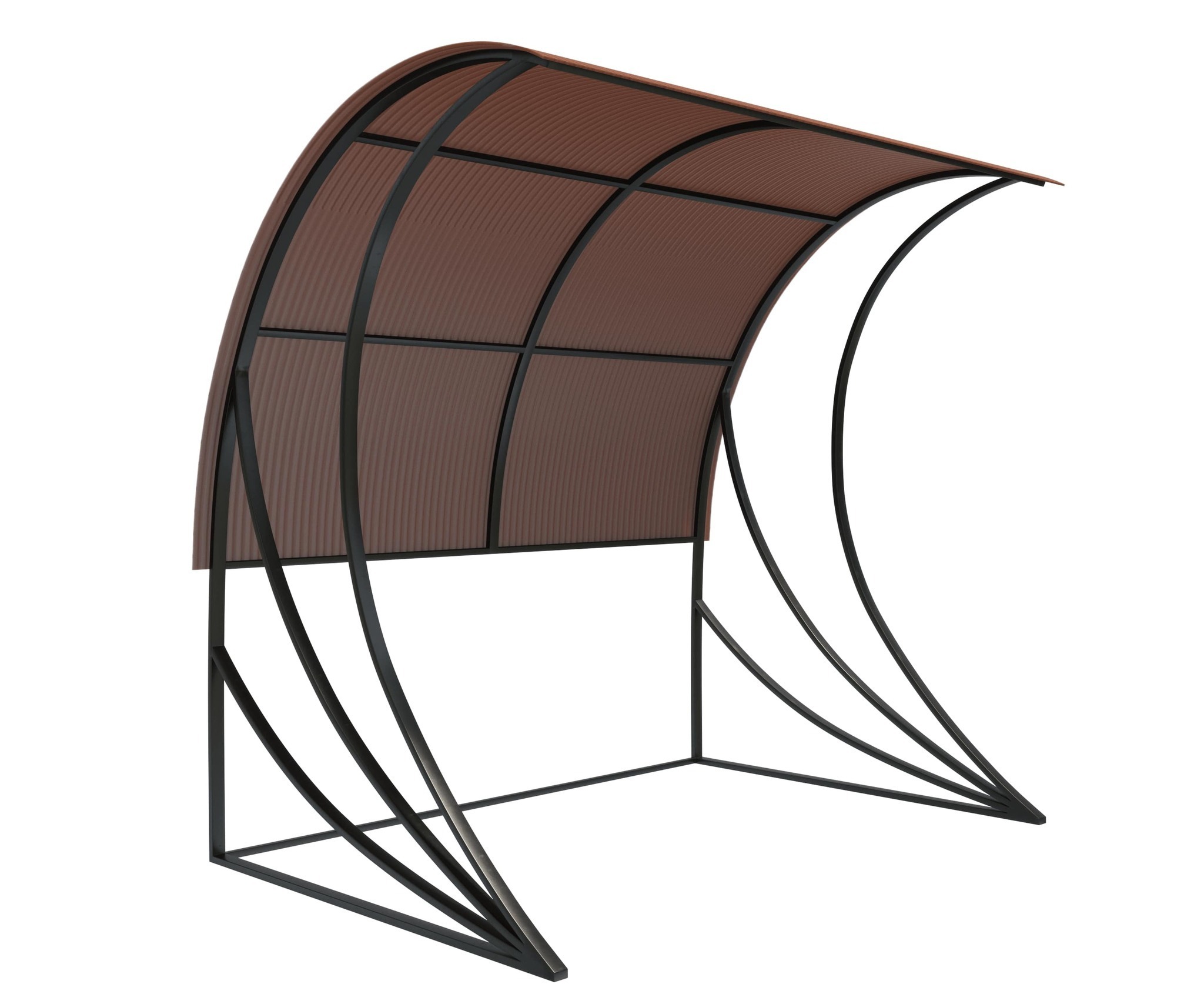 Опоры и каркас: Стальной профиль различного сечения. Покрыты порошковой полимерной краской. Стандартный цвет – чёрный RAL 9005 или серый RAL 7016.Крыша: Поликарбонат.