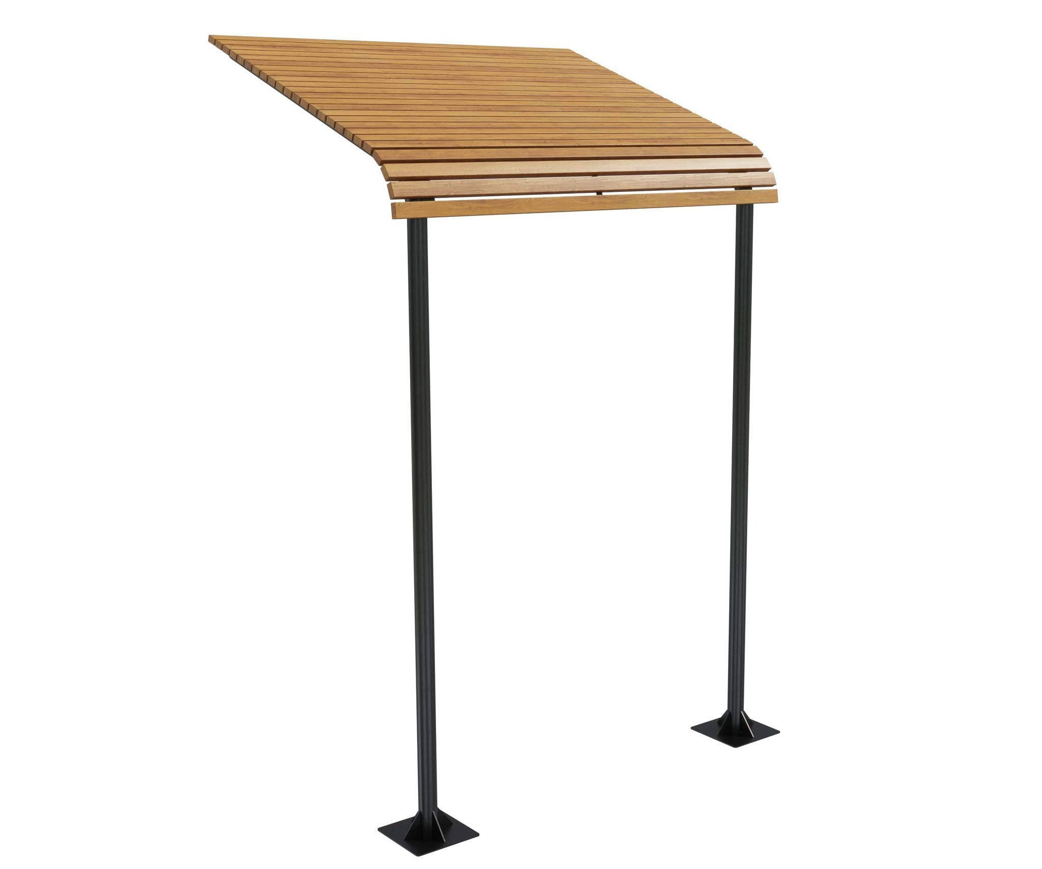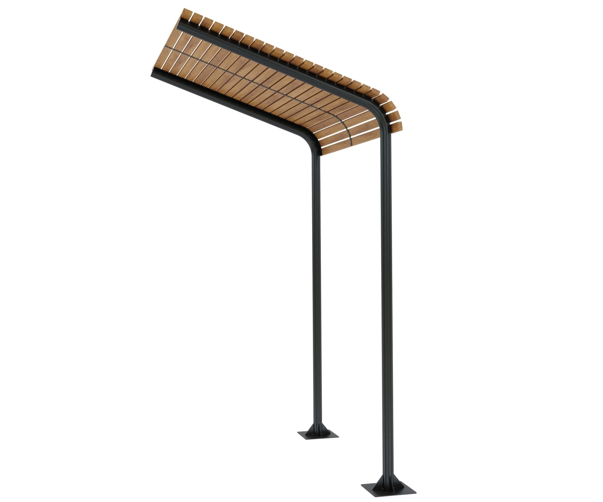 Опоры и каркас: Сталь. Покрыты порошковой полимерной краской. Стандартный цвет – чёрный RAL 9005 или серый RAL 7040.Обшивка: Брус из хвойных пород древесины. Покрытие - атмосферостойкая лессирующая акриловая пропитка с лаком. Стандартные цвета: Палисандр, Махагон, Тик.