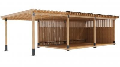 Стойки: Изготовлены из клееного бруса сечением 150х150 мм.Сиденье: Брус из хвойных пород древесины. Покрытие - атмосферостойкая лессирующая акриловая пропитка с лаком. Стандартные цвета: Палисандр, Махагон, Тик.