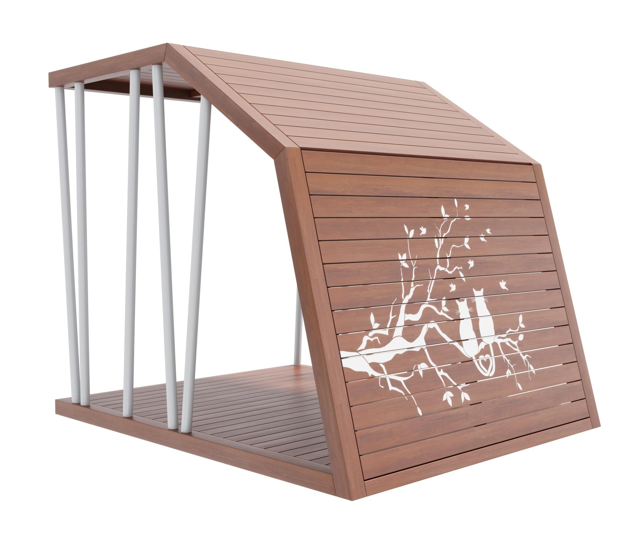 Опоры и каркас: Сталь. Покрыты порошковой полимерной краской. Стандартный цвет – чёрный RAL 9005 или серый RAL 7040.Крыша, стенка и пол: Брус из хвойных пород древесины. Покрытие - атмосферостойкая лессирующая акриловая пропитка с лаком. Стандартные цвета: Палисандр, Махагон, Тик.
