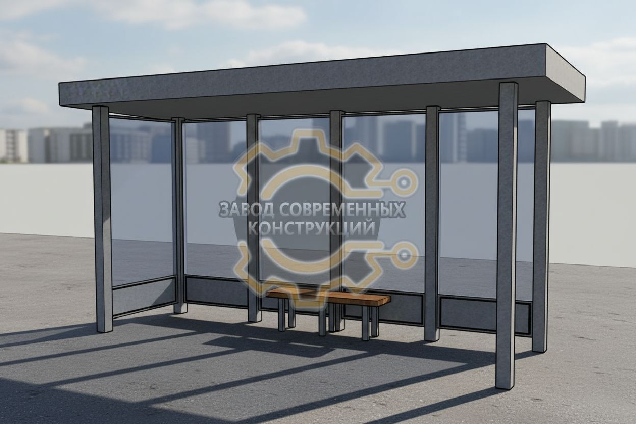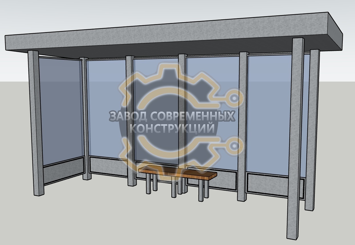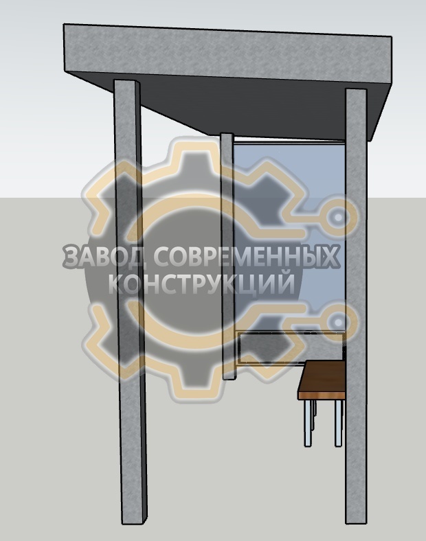 - Каркас крыши - металлические фермы из профильных труб. Крыша имеет прямоугольную форму.