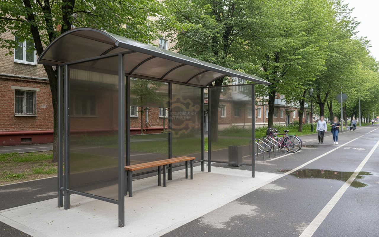 • Каркас крыши - стальные профильные трубы. Крыша имеет скругленную форму.