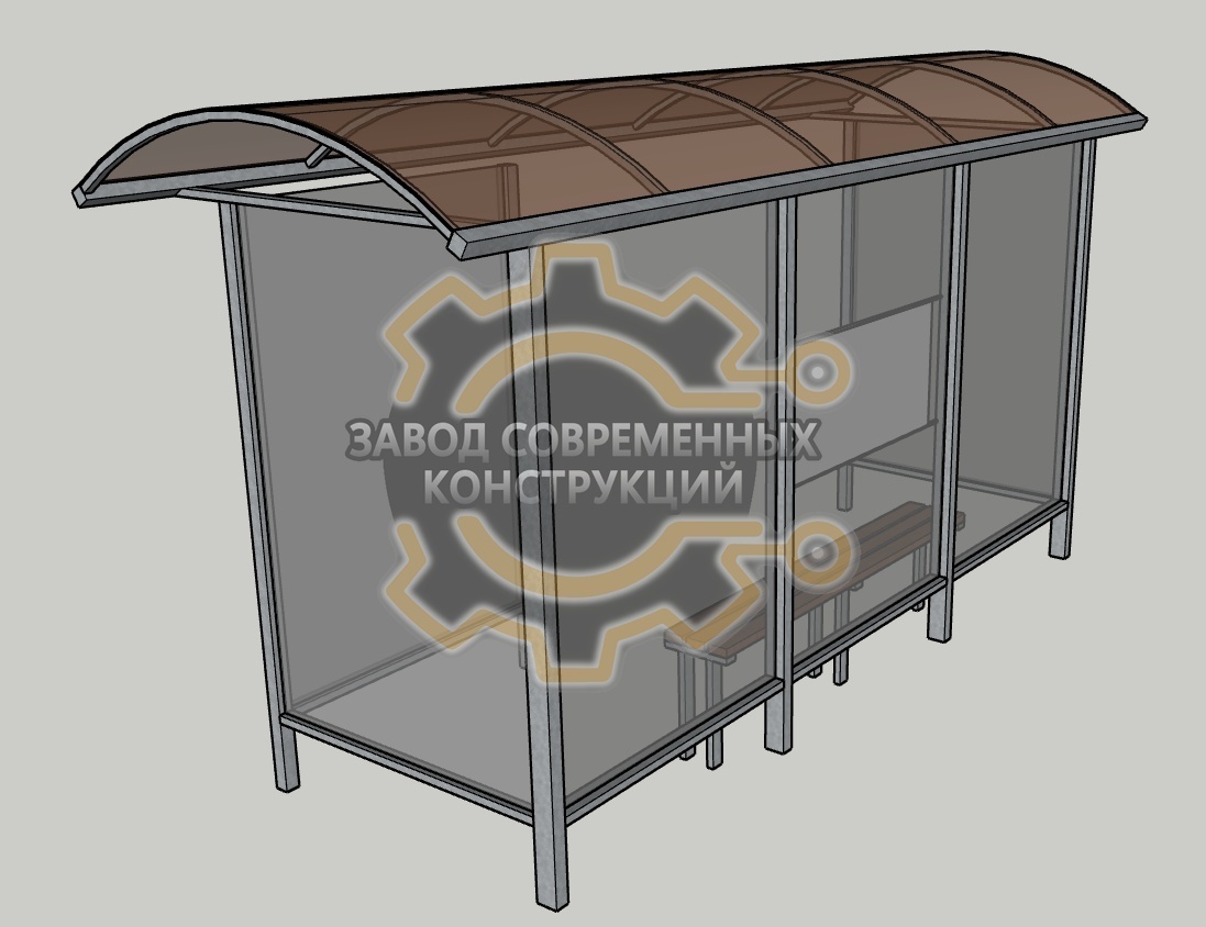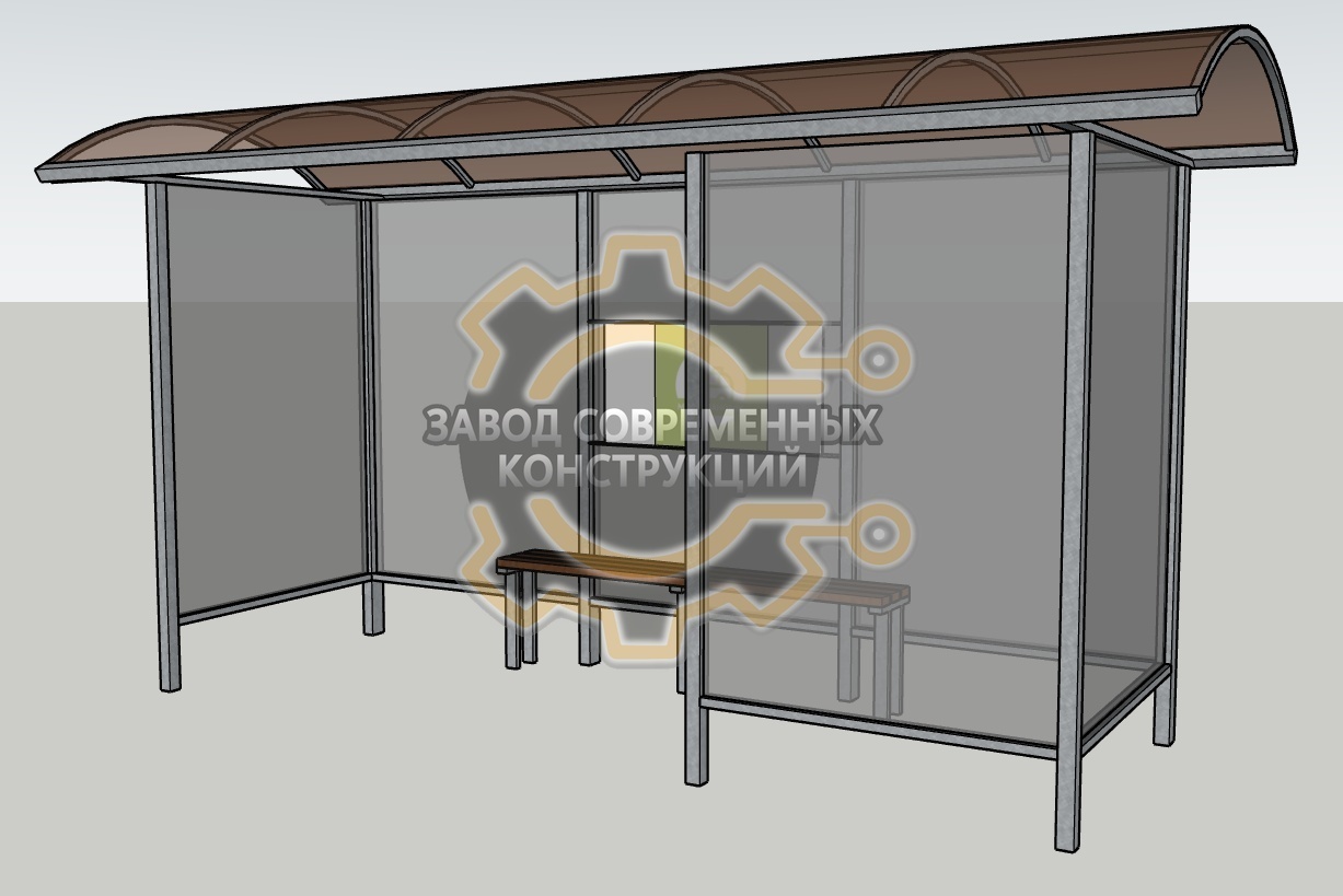 • Каркас крыши - стальные профильные трубы. Крыша имеет скругленную форму.