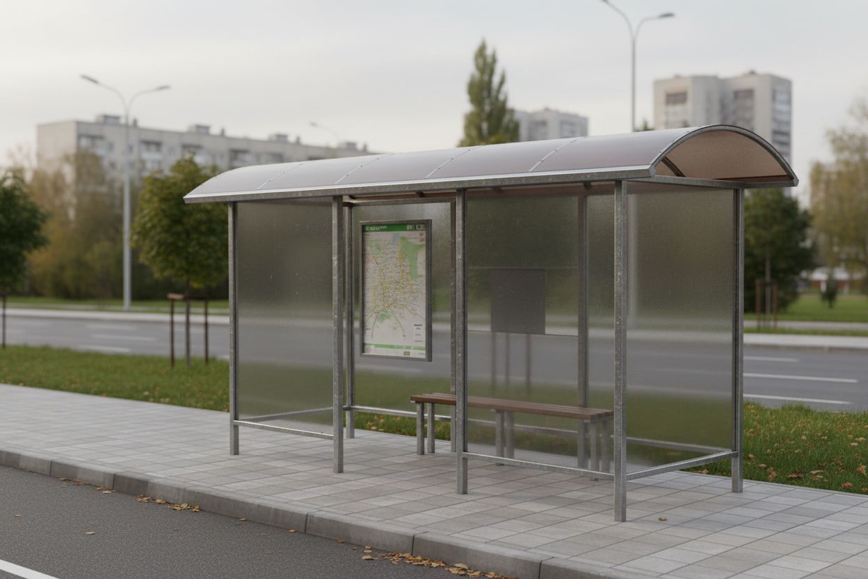 • Каркас крыши - стальные профильные трубы. Крыша имеет скругленную форму.