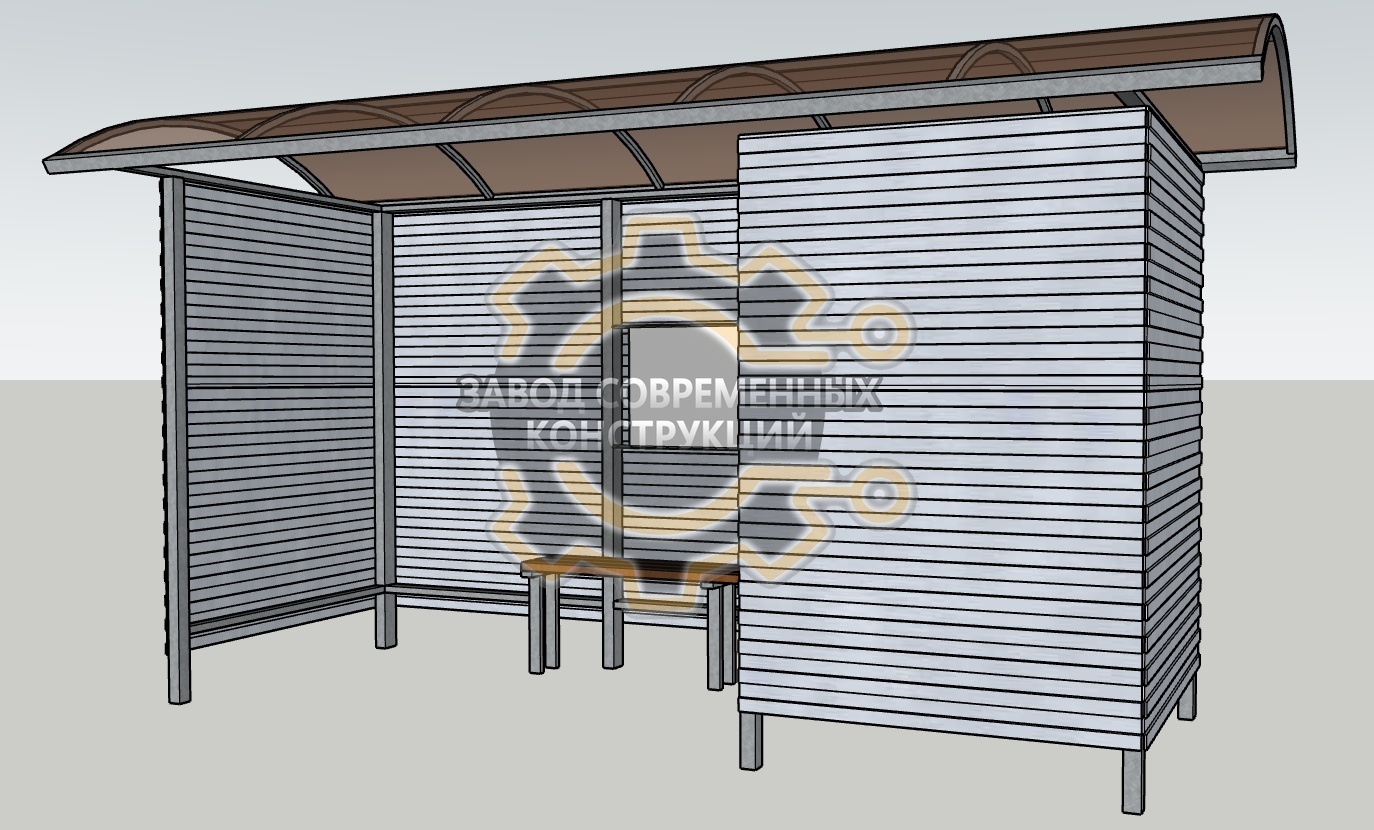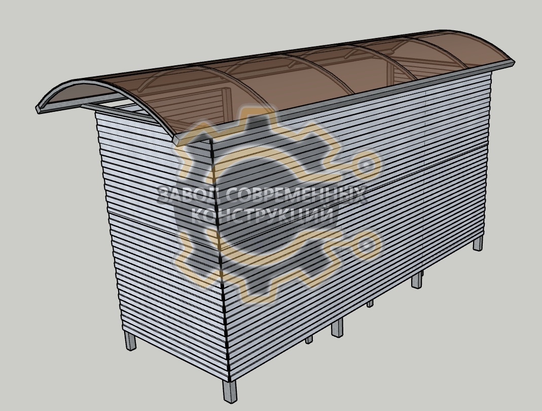- Каркас крыши - стальные профильные трубы. Крыша имеет скругленную форму.