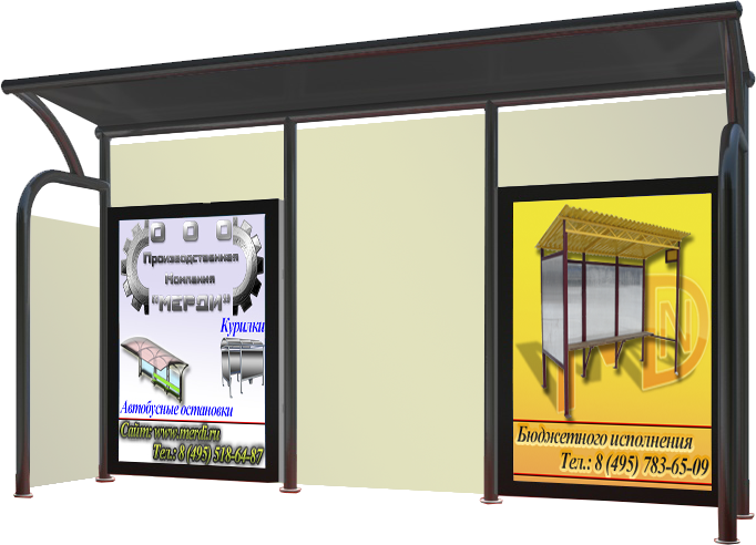Комплектация: деревянная лавочка, рекламные блоки (1р. - 1 рекл. блок, 2р. - 2 рекл. блока).