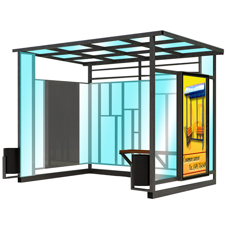 Комплектация: 2 урны для мусора, деревянная лавочка, рекламные блоки (без рекламы / 1 блок / 2 блока).