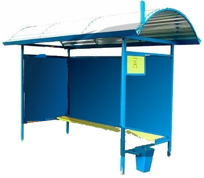 Павильон ПОк – конструкция высокой надежности, которую можно эксплуатировать в разных условиях: на остановках общественного транспорта в городе, в промышленных районах, за городом, на железнодорожных полустанках. Металлические стены и крыша из оцинкованного профлиста защищают людей от погодных факторов и противостоят внешним воздействиям. Модель комплектуется урной и рамкой для расписания, а также лавочкой из деревянных брусьев.