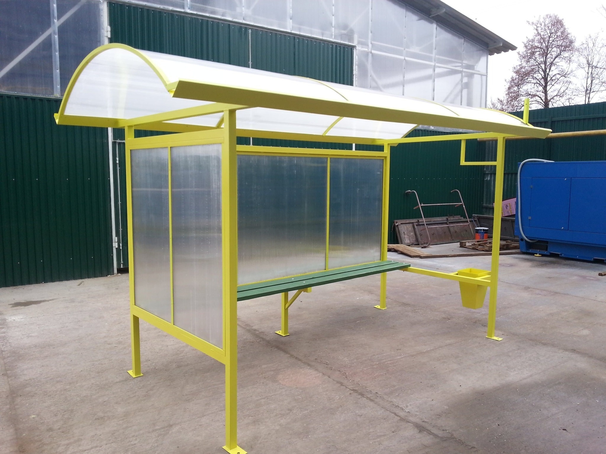 Остановочный павильон ПОп – эстетичная и надежная конструкция, предназначенная для установки на городских остановках общественного транспорта. Модель надежно противостоит погодным факторам, способна защитить достаточно большое количество людей от осадков. Для покрытия крыши и стен использован сотовый поликарбонат, придающий конструкции визуальную легкость. В основную комплектацию входит большая лавочка, урна, а также табличка для расписания.