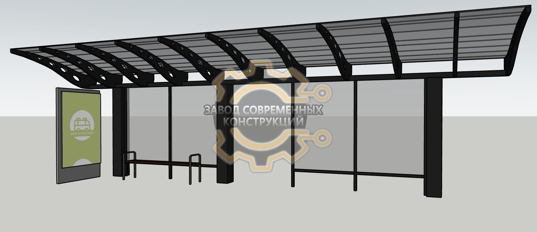 - Настил крыши - поликарбонат монолитный толщиной 6 мм.