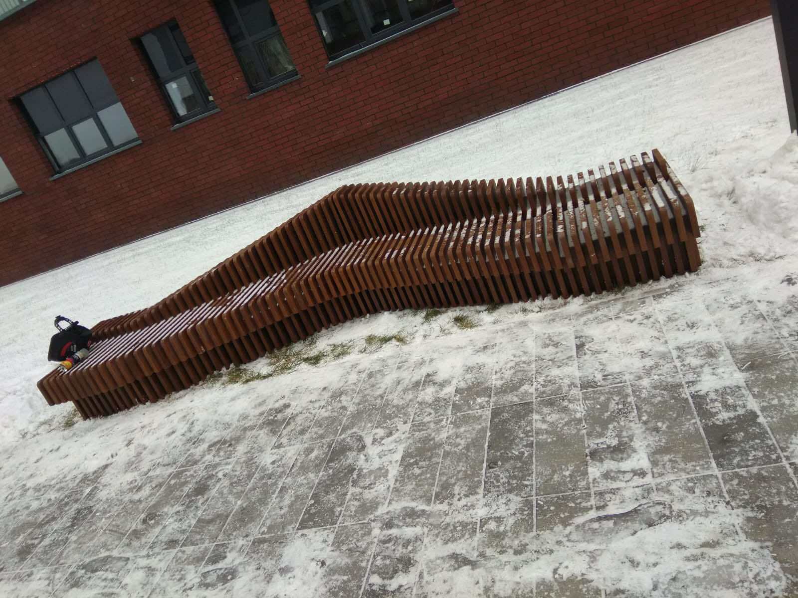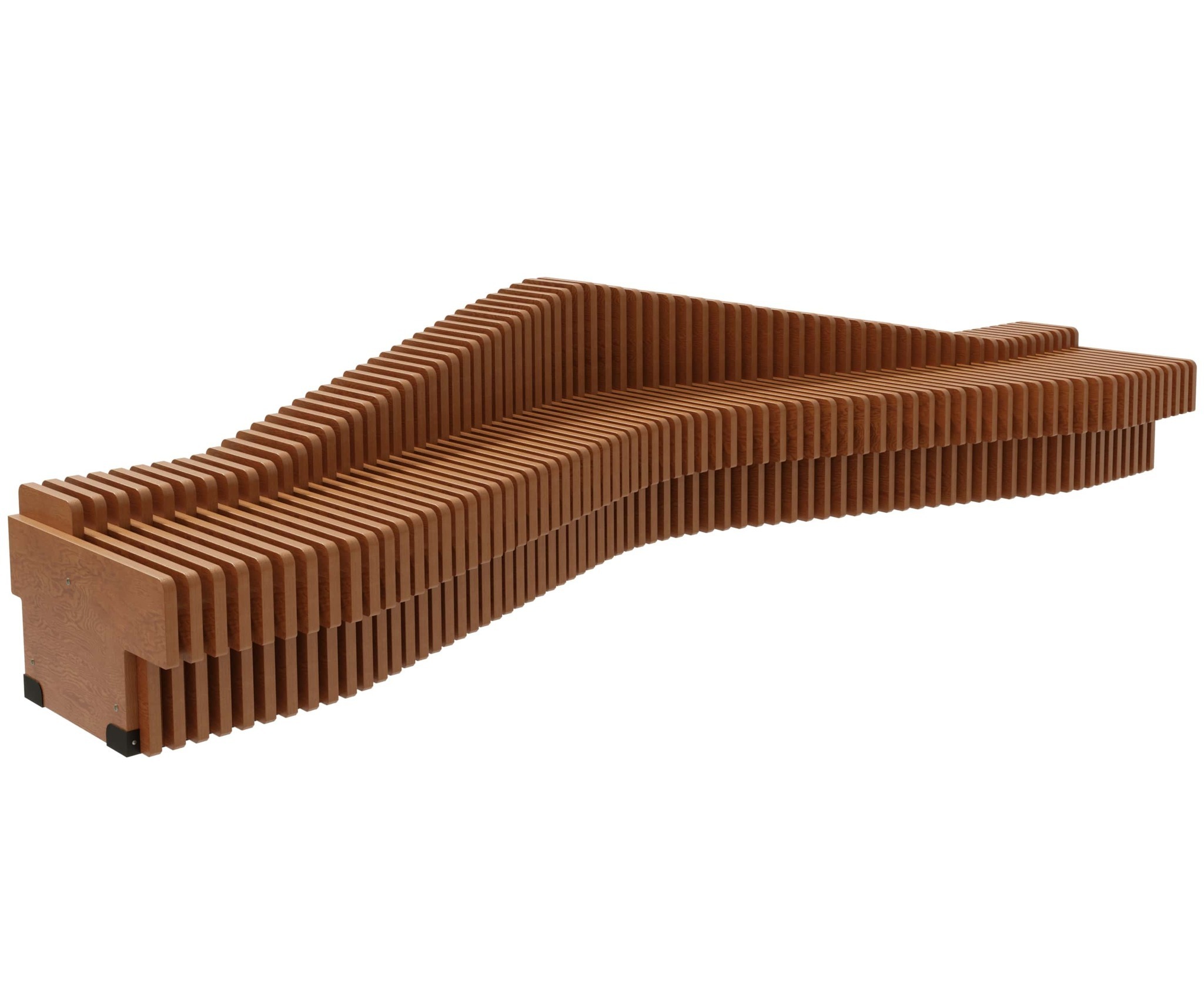 Опоры, сиденье и спинка: Фанера ФСФ. Покрытие - атмосферостойкая лессирующая акриловая пропитка с лаком. Стандартные цвета: Палисандр, Махагон, Тик.