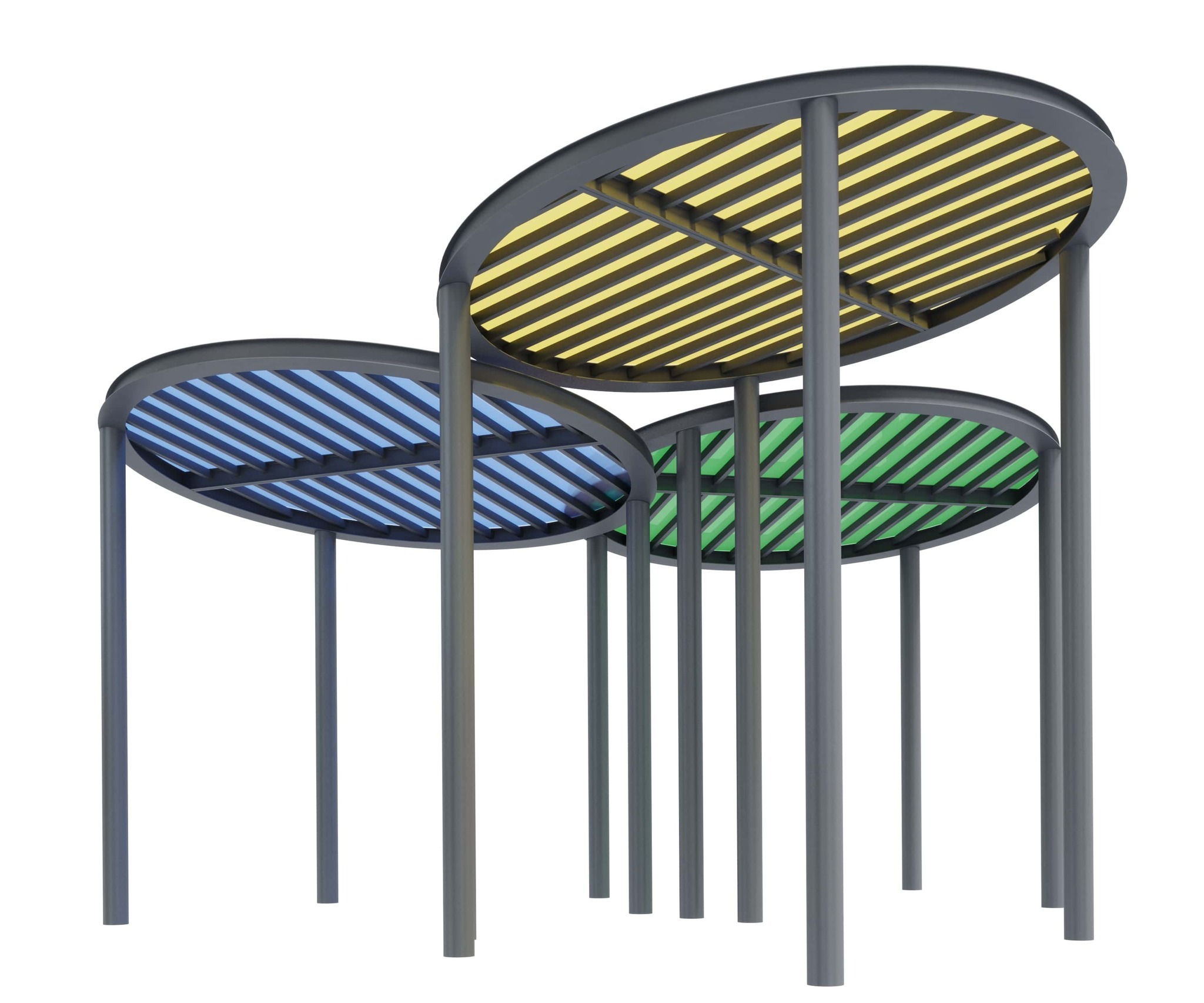Опоры и каркас: Сталь. Покрыты порошковой полимерной краской. Стандартный цвет – чёрный RAL 9005 или серый RAL 7040.