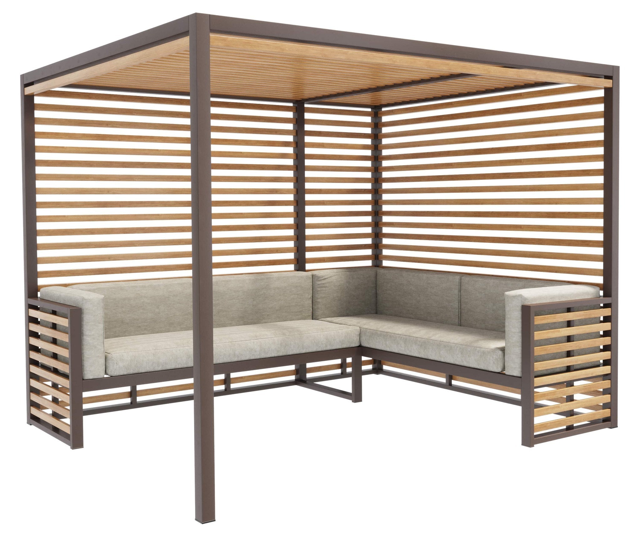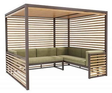 Опоры: Профильная труба 60x30 мм и 60x60 мм. Покрыты порошковой полимерной краской. Стандартный цвет – чёрный RAL 9005 или серый RAL 7040.Рейки: Брус из хвойных пород древесины. Покрытие - атмосферостойкая лессирующая акриловая пропитка с лаком. Стандартные цвета: Палисандр, Махагон, Тик.