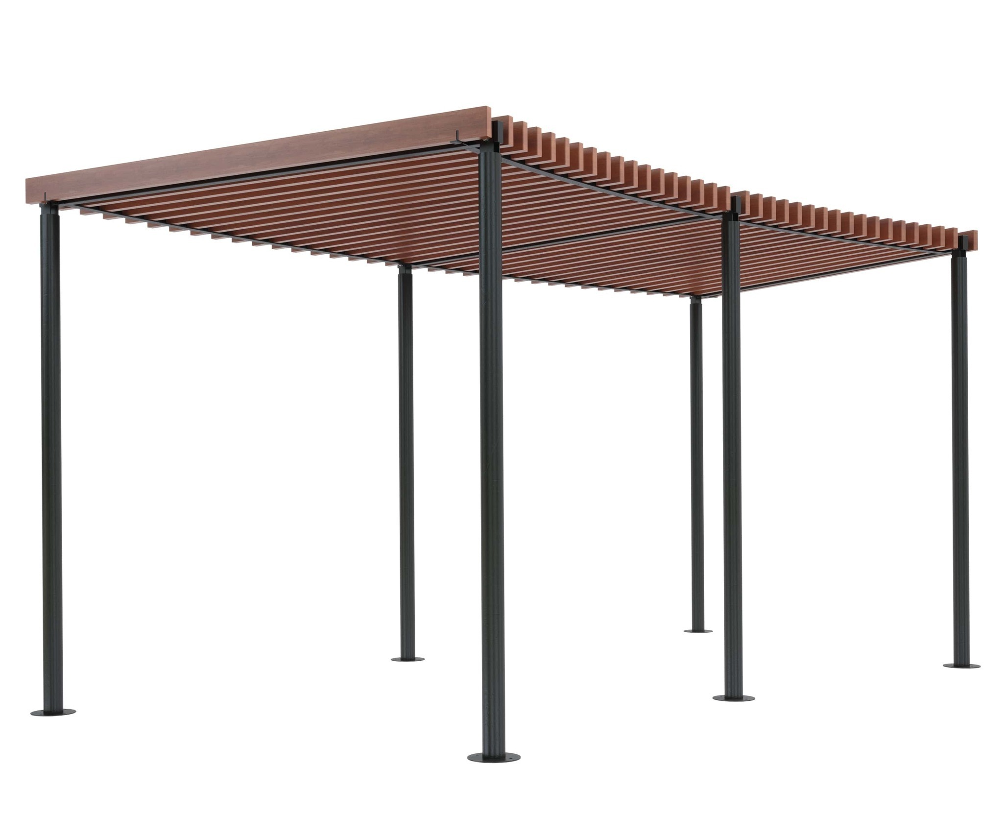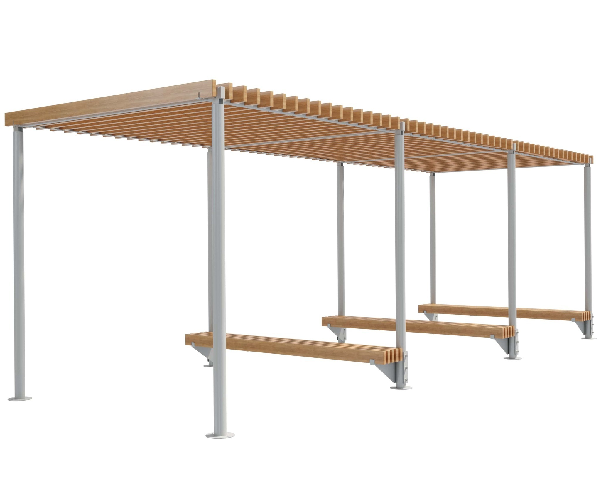 Опоры и каркас: Стальной профиль. Покрыты порошковой полимерной краской. Стандартный цвет – чёрный RAL 9005 или серый RAL 7040.Обшивка: Брус из хвойных пород древесины. Покрытие - атмосферостойкая лессирующая акриловая пропитка с лаком. Стандартные цвета: Палисандр, Махагон, Тик.