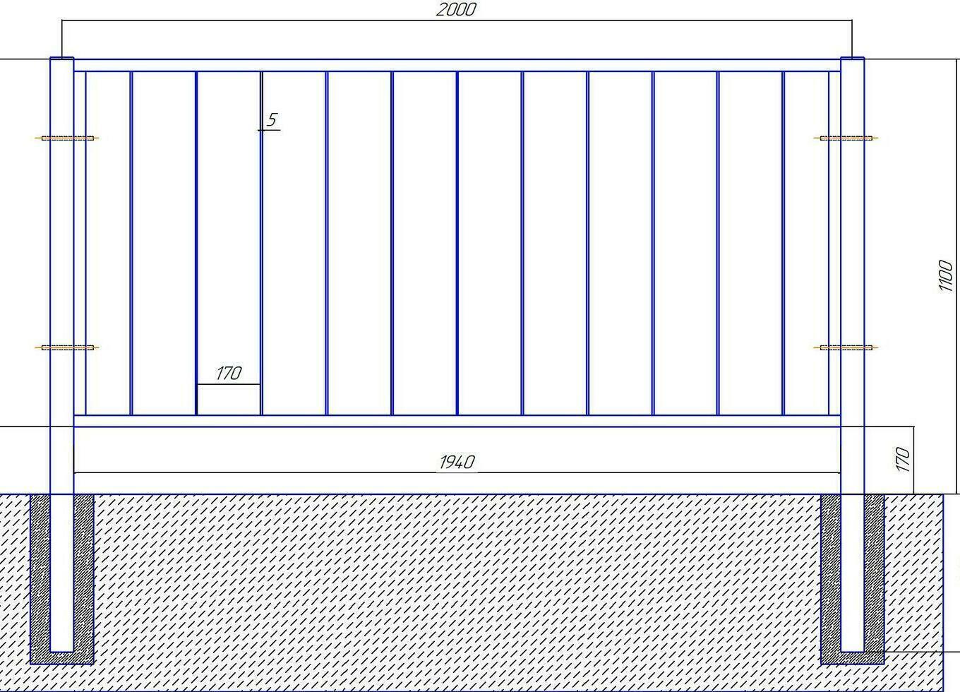 Поперечины: профильные трубы 60х30 мм.