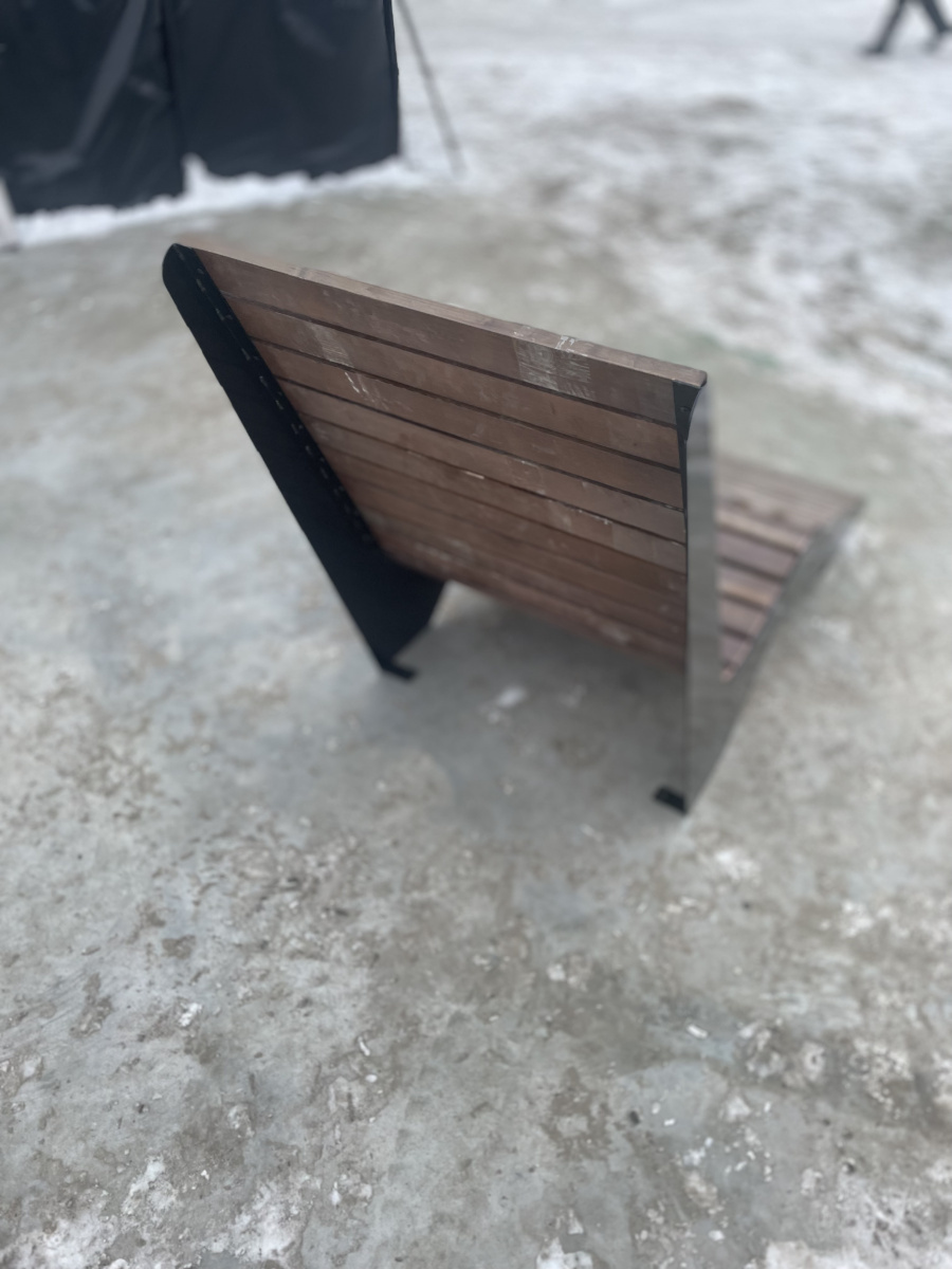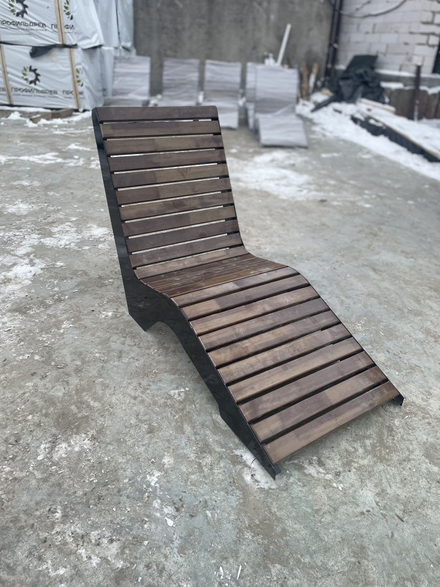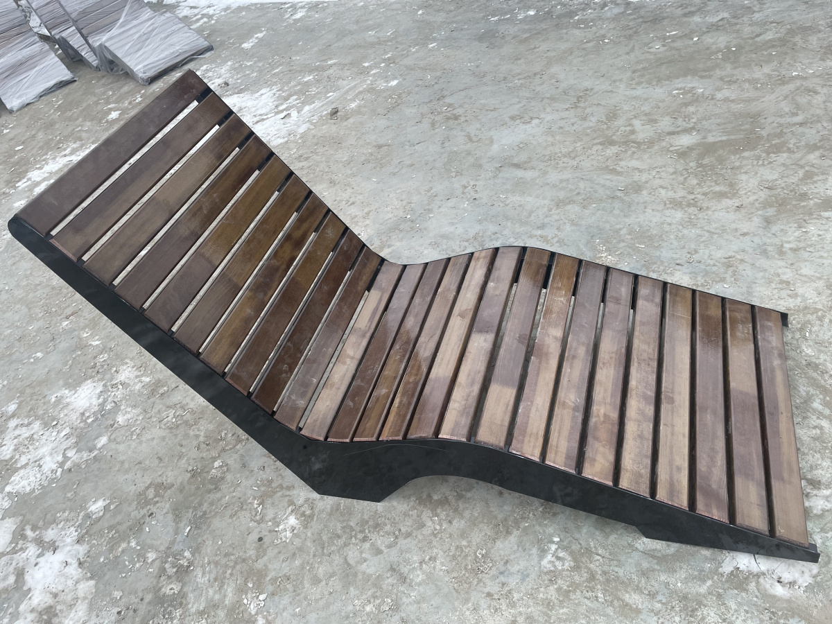 Шезлонг парковый"- одна из самых оригинальных скамеек, которая идеально вписывается в городские парки,скверы и площади. Массивная конструкция из стали и сосны, придают вид настоящей современности. Конструкция выполнена методом лазерной резки на современном оборудовании. Поверхность-ангарская сосна, покрытая антисептиком и 3-мя слоями лака. антивандальный металлический каркас обеспечивает устойчивость и защиту от ненадлежащего использования.Благодаря широкому металлическому профилю и деревянному брусу скамейка обладает достаточным запасом прочности, что гарантирует долговечное использование скамейки, даже на открытом воздухе
