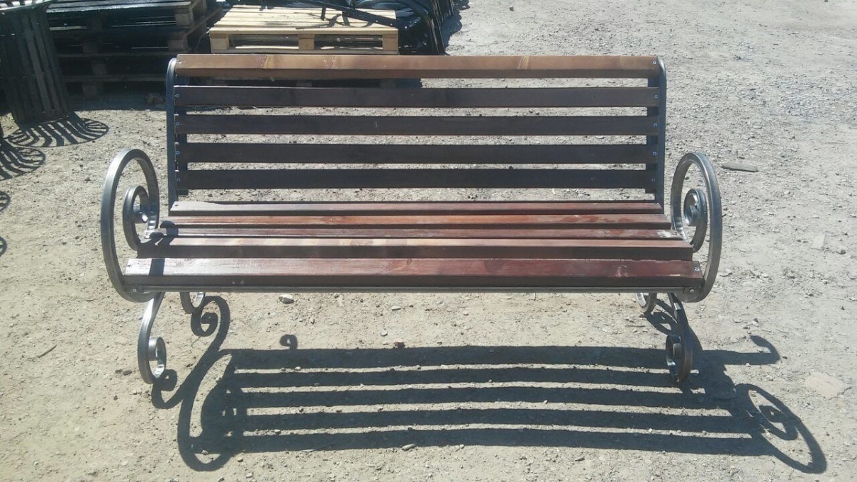 Скамейка выполнена с элементами художественной ковки. Все лавочки производятся непосредственно вручную. Данная модель не имеет деревянных подлокотников, вместо них присутствуют элементы художественной ковки, вензеля, что отлично заменяет брус. Место установки: парки, скверы, аллеи, площадки, оздоровительные центры. Сиденье скамейки и спинка выполнена из сухой обработанной сосны с нанесение специального раствора, который хорошо переносит различные перепады температур и атмосферные осадки. Сверху брус покрыт лаком и 3 слоя. Скамейка поставляется в двух вариантах: 2 метра и 1,5 метра. Каждая скамейка укомплектована брусом сечением 60*40 мм. Комплект крепежа в комплекте.Внимание!!! Скамейка "Большой вензель" поставляется в разобранном виде!!!