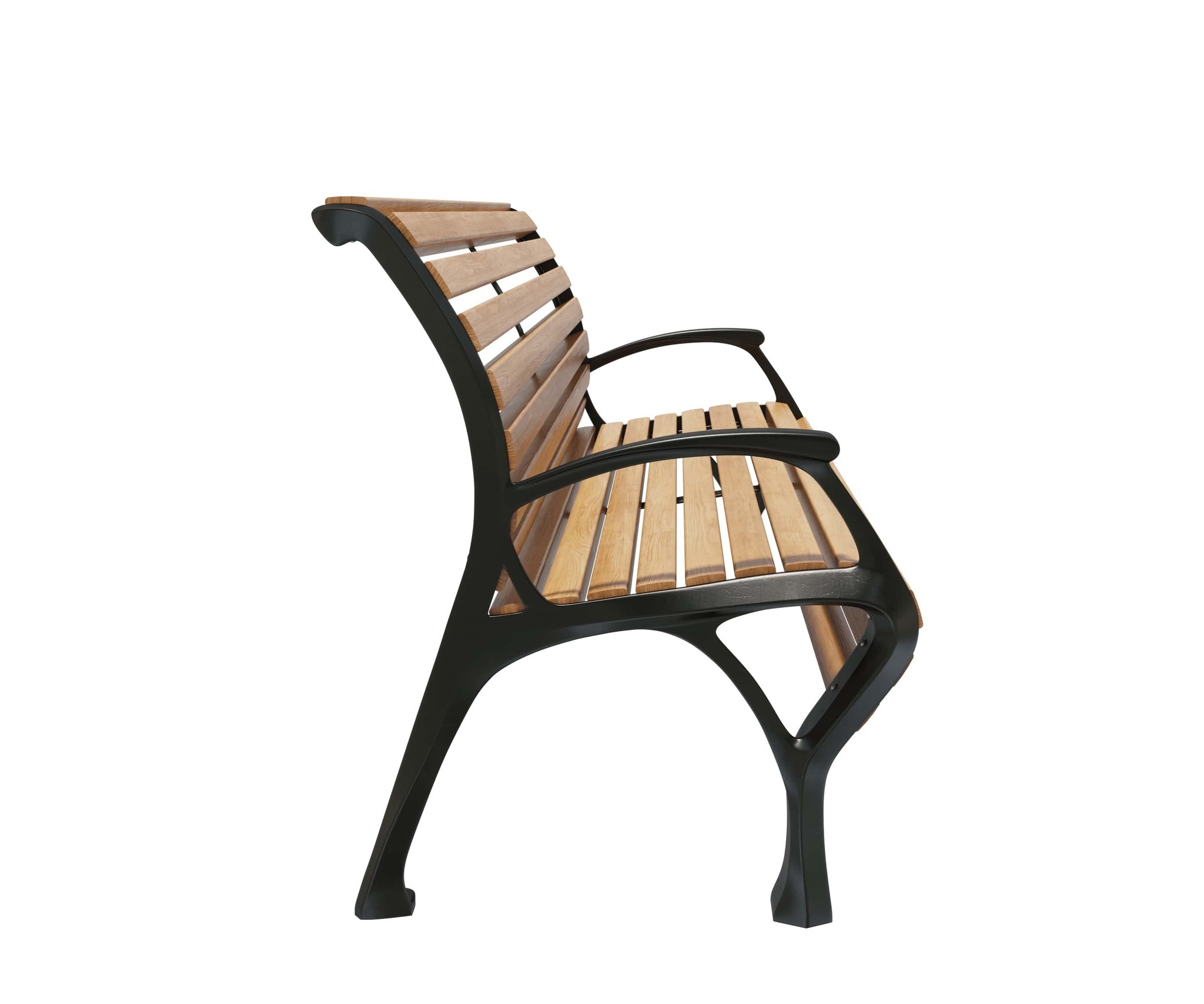 Сиденье и спинка: Брус из хвойных пород древесины. Покрытие - атмосферостойкая лессирующая акриловая пропитка с лаком. Стандартные цвета: Палисандр, Махагон, Тик.
