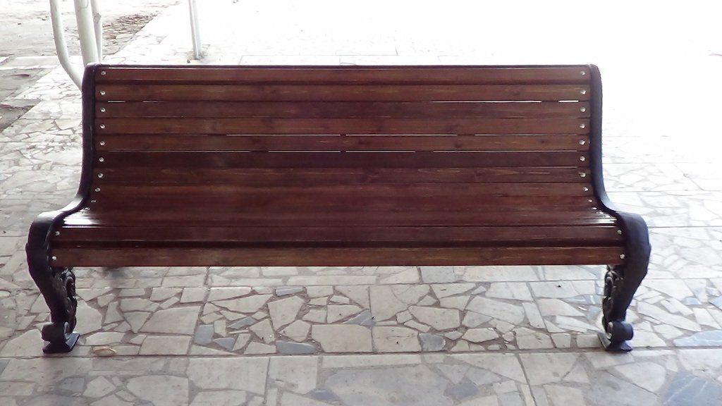 Сиденье и спинка: Брус из хвойных пород древесины. Покрытие - атмосферостойкая лессирующая акриловая пропитка с лаком. Стандартные цвета: Палисандр, Махагон, Тик.