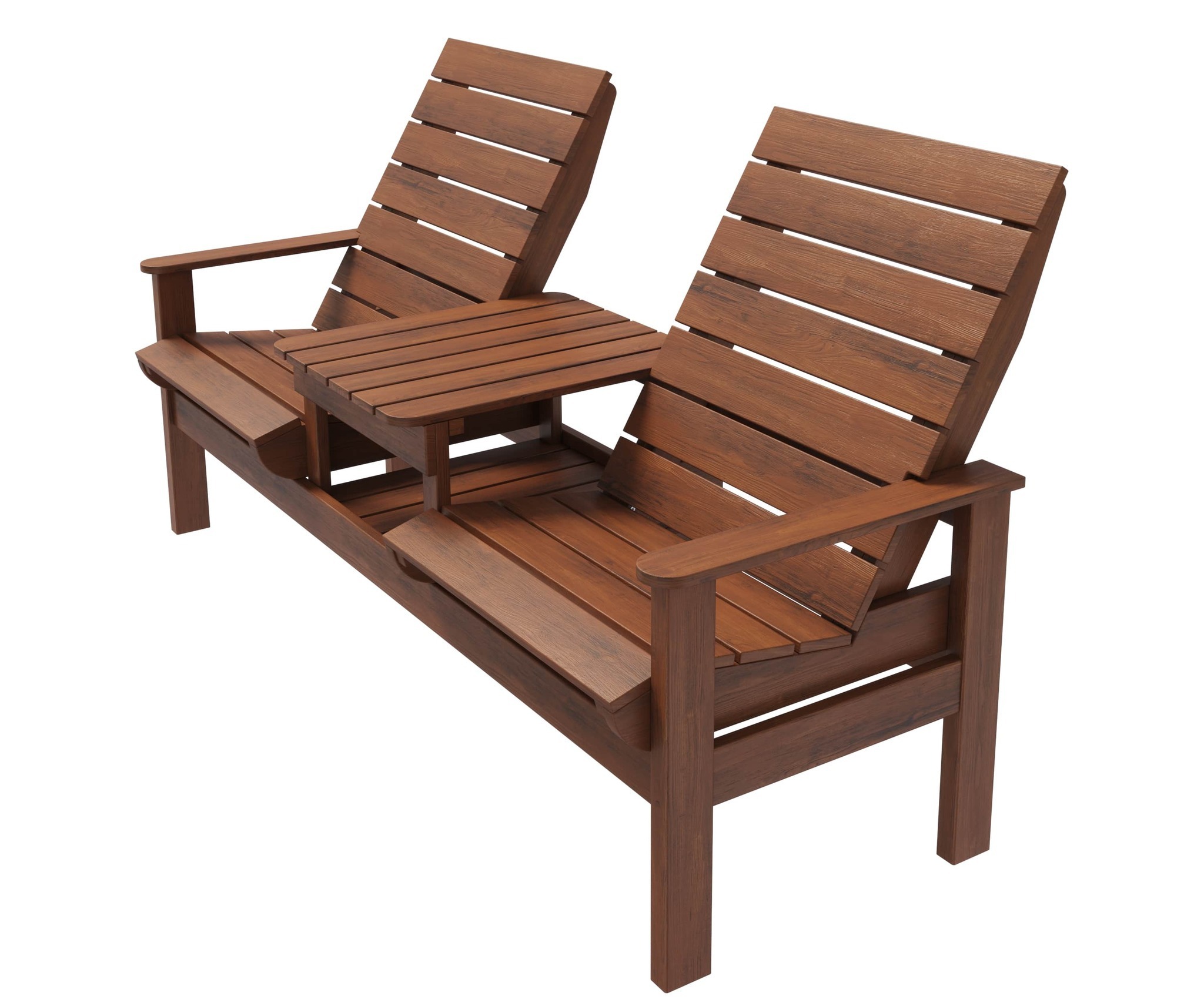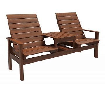 Опоры, сиденье и спинка: Брус из хвойных пород древесины. Покрытие - атмосферостойкая лессирующая акриловая пропитка с лаком. Стандартные цвета: Палисандр, Махагон, Тик.