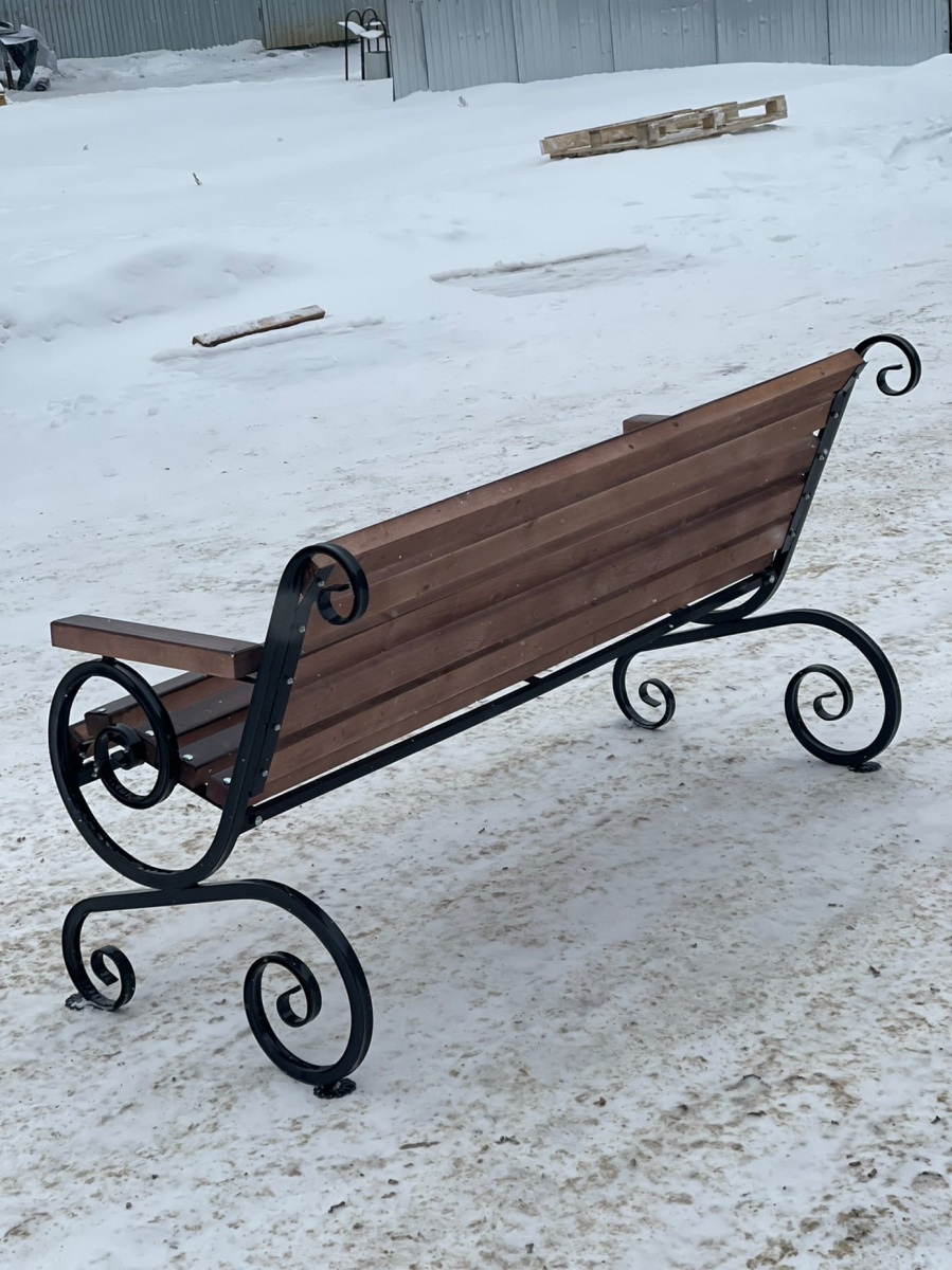 Скамейка выполнена с элементами художественной ковки. Все лавочки производятся непосредственно вручную.Место установки: парки, скверы, аллеи, площадки, оздоровительные центры.Сиденье скамейки и спинка выполнена из сухой обработанной сосны с нанесение специального раствора, который хорошо переносит различные перепады температур и атмосферные осадки. Сверху брус покрыт лаком и 3 слоя.Скамейка поставляется в двух вариантах:2 метра и 1,5 метра. Каждая скамейка укомплектована брусом сечением 60*40 мм.Комплект крепежа в комплекте.Внимание!!! Скамейка "Лоза с подлокотником" поставляется в разобранном виде!!!