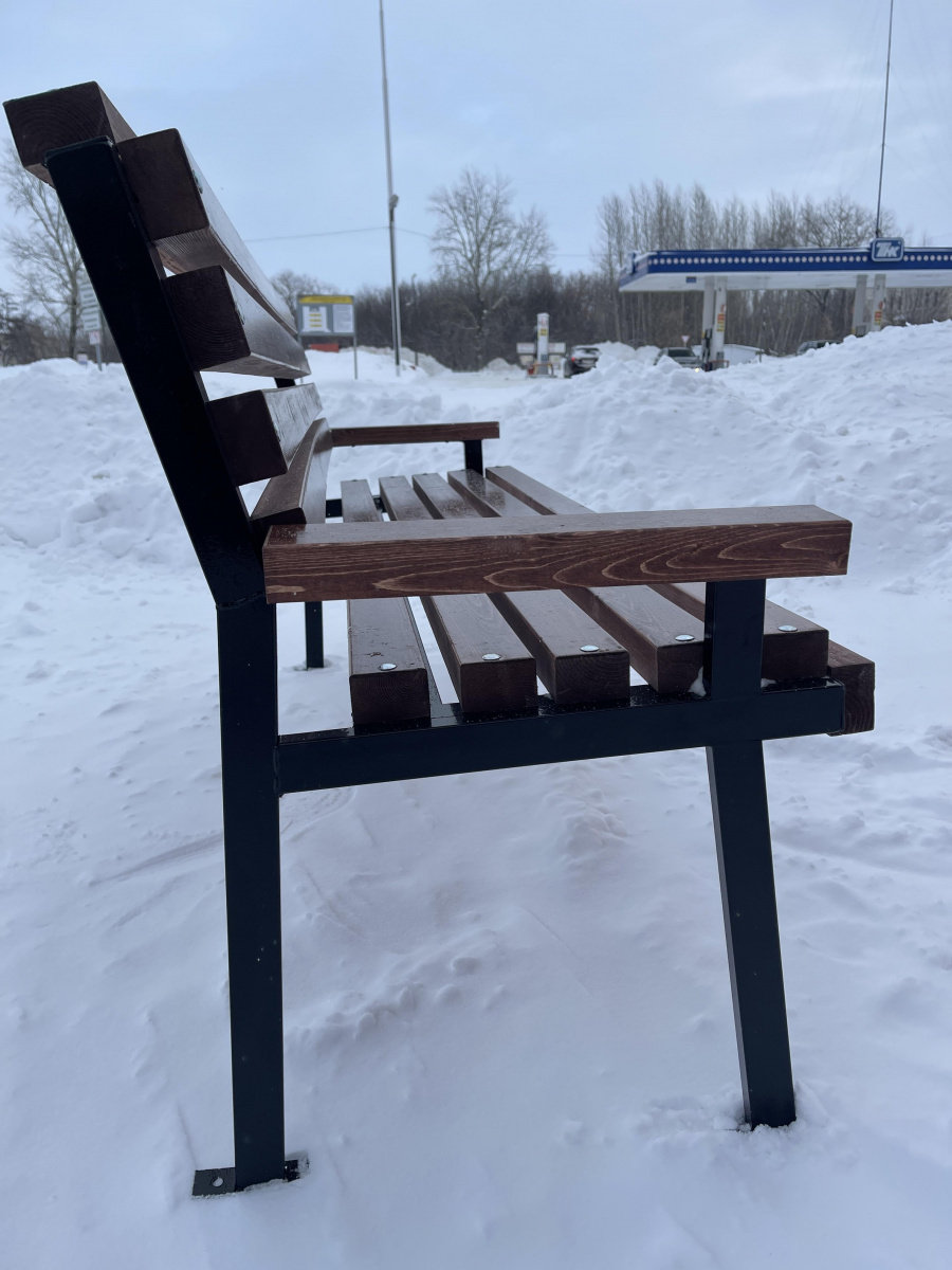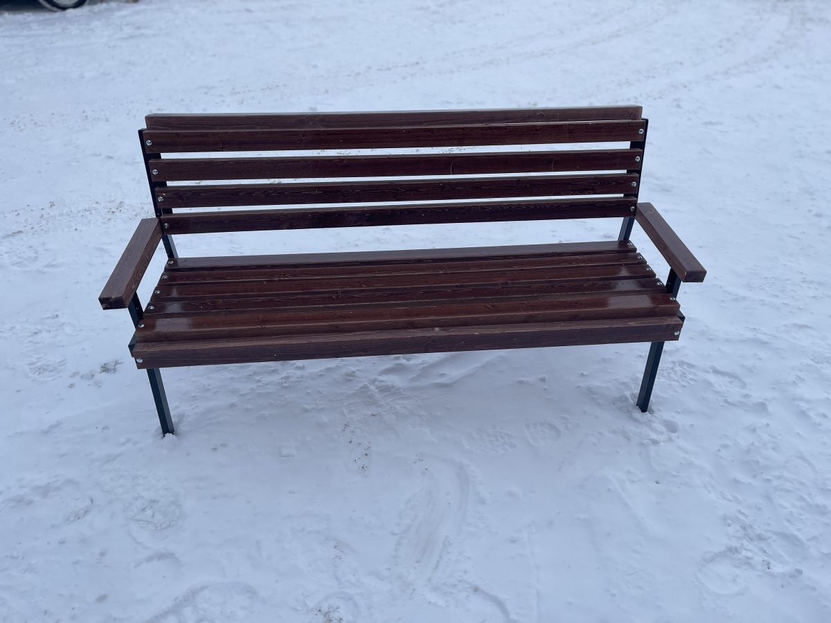 Общая длина скамейки: 1,5 м. - 2,0 Высота сидения: 460 мм Высота в верхней точке: 820 мм. Ширина сидения: 460 мм Ширина спинки: 410 мм. Окрас каркаса: Порошковая полиэфирная краска RAL 9005. Материал исполнения каркаса: Квадрат труба 40*20 (1,5мм) Брус: кол-во 11 шт. Сечение бруса: 60х40. Материал пропитки: Антисептик (цвет-палисандр) и 3 слоя лака. Комплект: