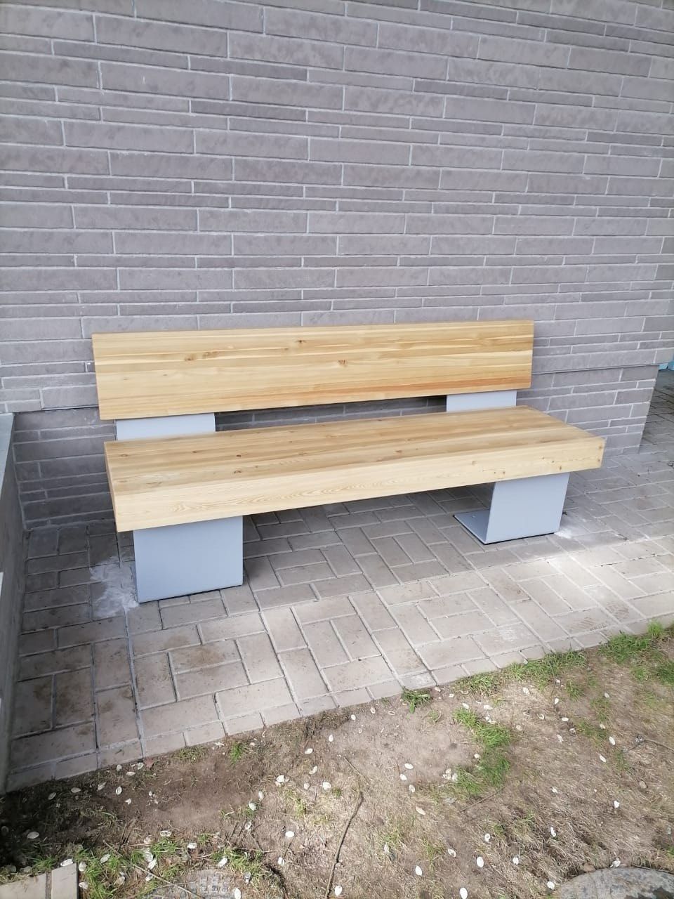 Сиденье и спинка: Брус из хвойных пород древесины. Покрытие - атмосферостойкая лессирующая акриловая пропитка с лаком. Стандартные цвета: Палисандр, Махагон, Тик.