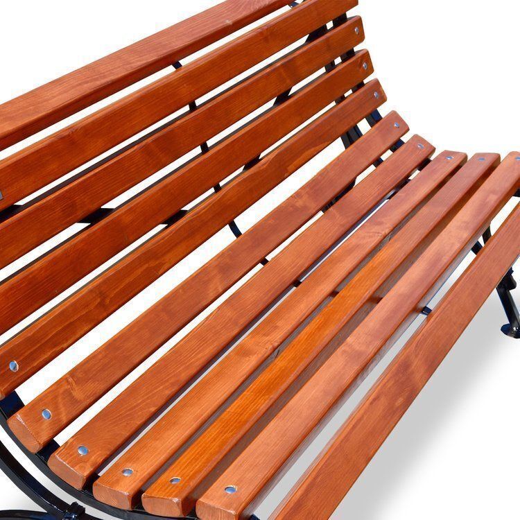 Опоры: Сталь. Покрыты порошковой полимерной краской. Стандартный цвет – чёрный RAL 9005 или серый RAL 7016.Сиденье и спинка: Брус - сосна. Покрытие - атмосферостойкая лессирующая акриловая пропитка с лаком. Стандартные цвета: Палисандр, Махагон, Тик.