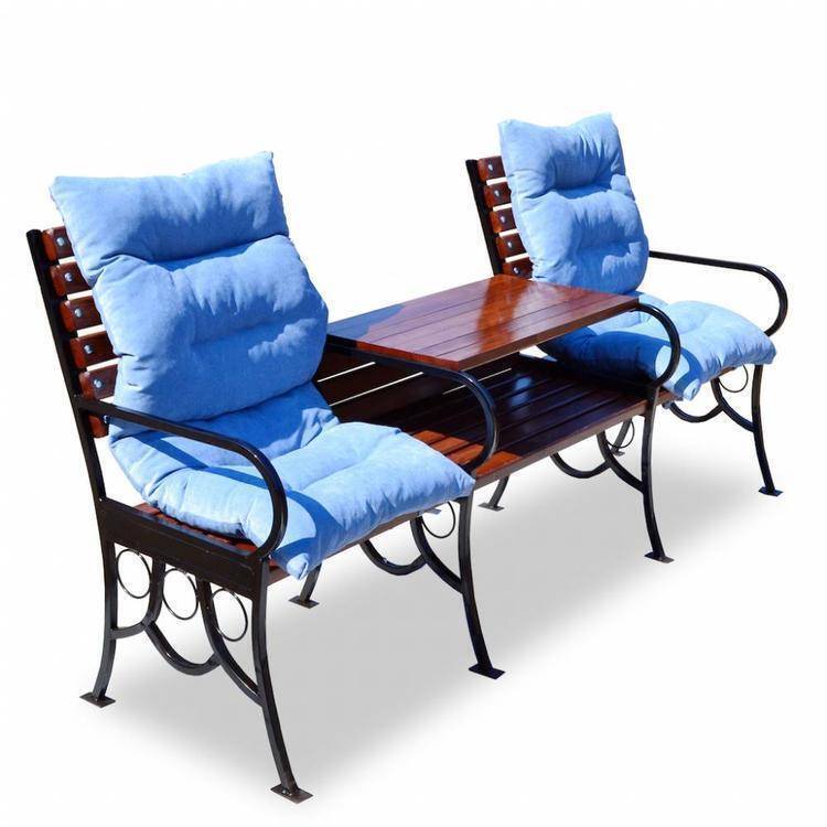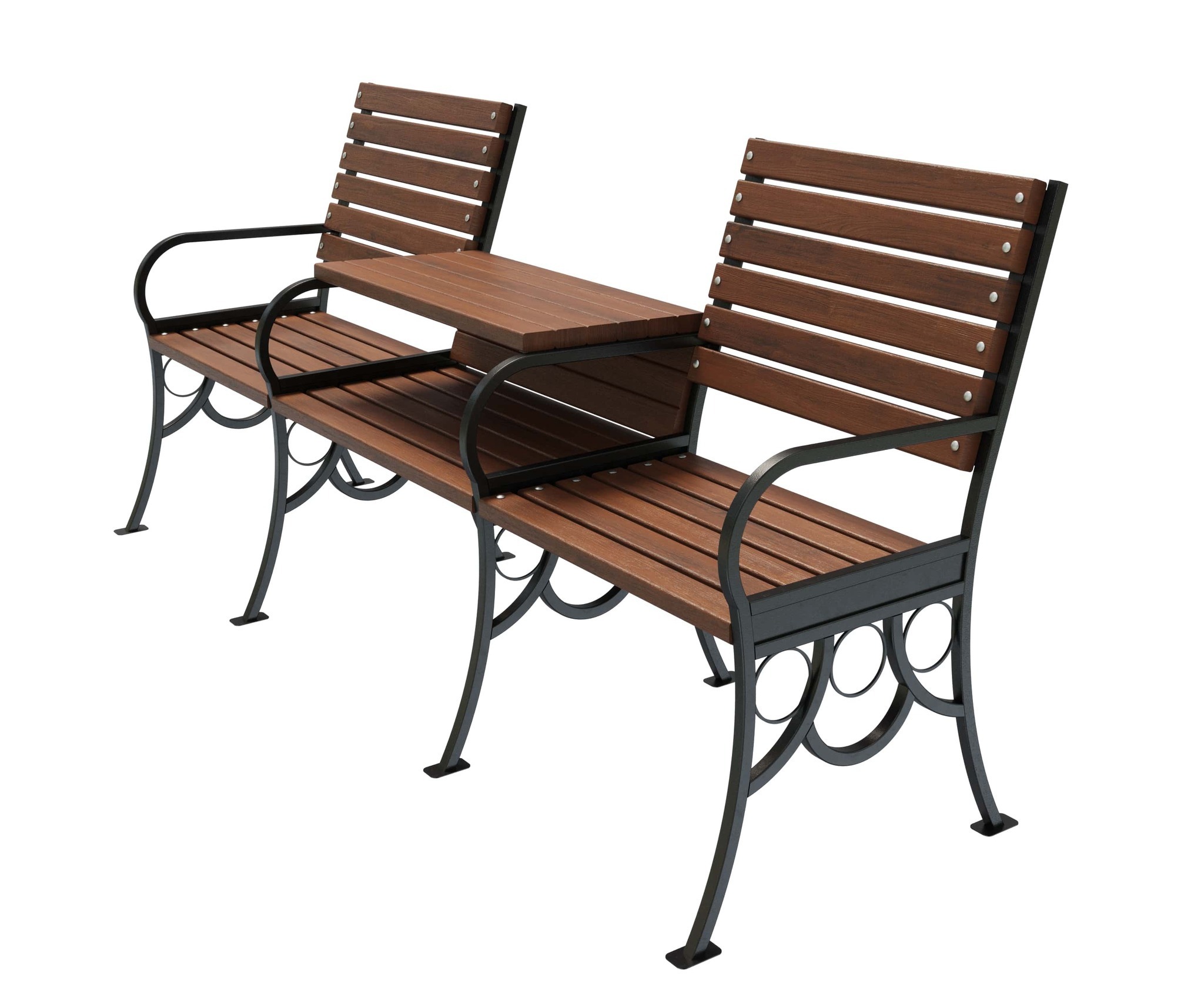 Опоры: Сталь. Покрыты порошковой полимерной краской. Стандартный цвет – чёрный RAL 9005 или серый RAL 7016.Сиденье и спинка: Брус из хвойных пород древесины. Покрытие - атмосферостойкая лессирующая акриловая пропитка. Возможно покрытие лаком или маслом за дополнительную плату. Стандартные цвета: Палисандр, Махагон, Тик.