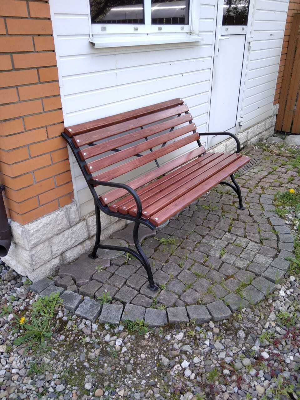 Сиденье и спинка: Брус из хвойных пород древесины. Покрытие - атмосферостойкая лессирующая акриловая пропитка с лаком. Стандартные цвета: Палисандр, Махагон, Тик.