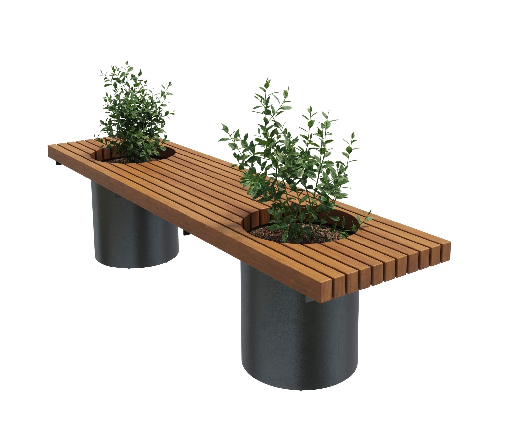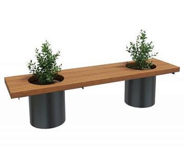 Вазоны и опоры: Сталь. Покрыты порошковой полимерной краской. Стандартный цвет – чёрный RAL 9005 или серый RAL 7016.Сиденье: Брус из хвойных пород древесины. Покрытие - атмосферостойкая лессирующая акриловая пропитка с лаком. Стандартные цвета: Палисандр, Махагон, Тик.