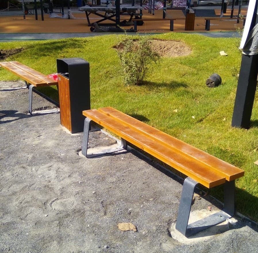 Сиденье и спинка: Брус из хвойных пород древесины. Покрытие - атмосферостойкая лессирующая акриловая пропитка с лаком. Стандартные цвета: Палисандр, Махагон, Тик.