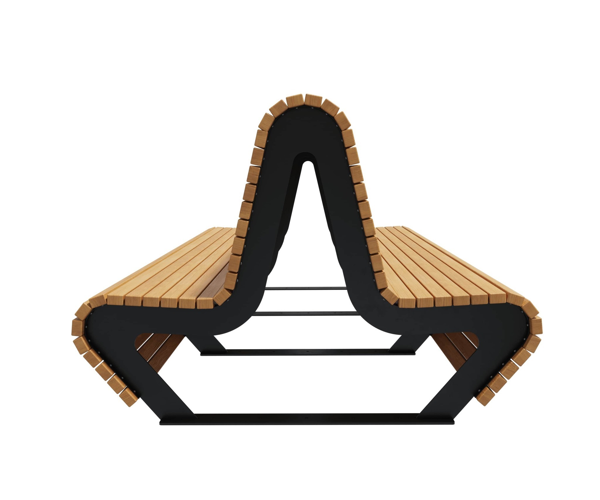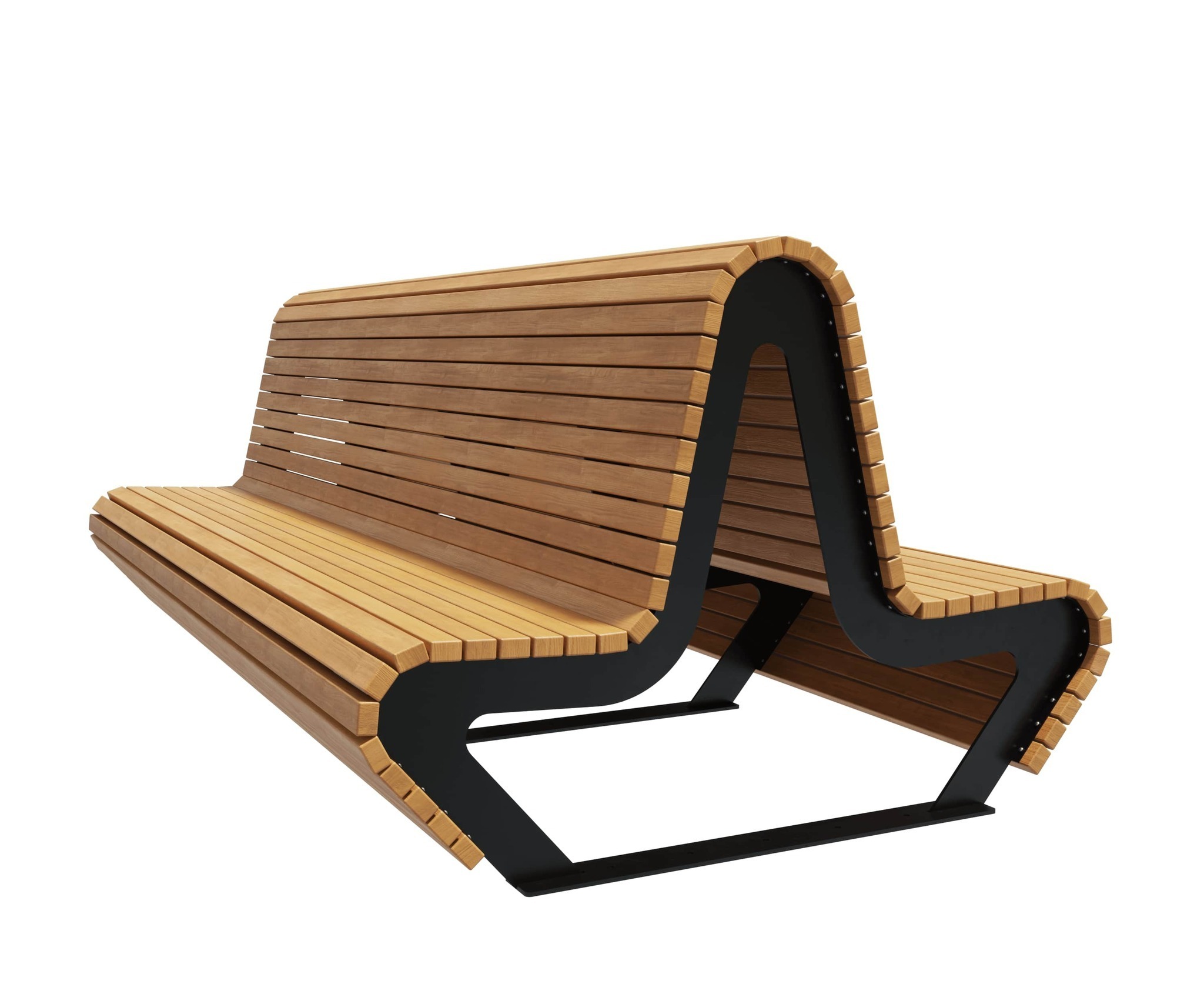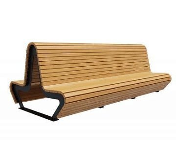 Опоры: Сварные, металлические, сложный дугообразный профиль, вырезанный из листовой стали. Сталь. Покрыты порошковой полимерной краской. Стандартный цвет – чёрный RAL 9005 или серый RAL 7016.Сиденье и спинка: Брус из хвойных пород древесины. Покрытие - атмосферостойкая лессирующая акриловая пропитка с лаком. Стандартные цвета: Палисандр, Махагон, Тик.